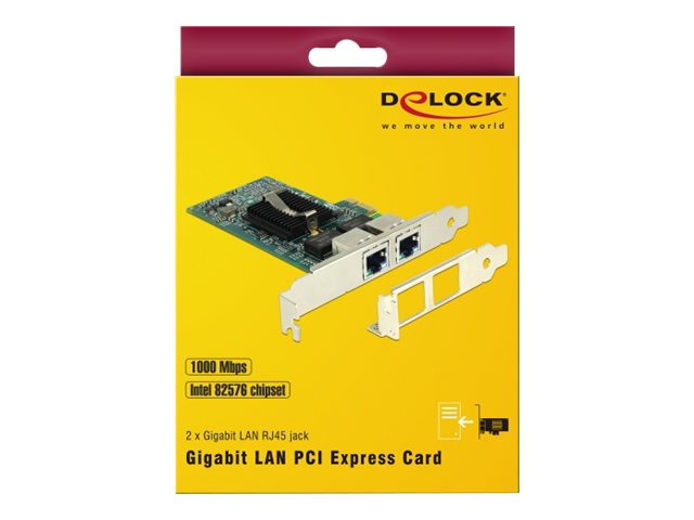 | Produktbeskrivelse | Delock PCI Express Card > 2 x Gigabit LAN - netværksadapter - PCIe 2.0 - Gigabit Ethernet x 2 |