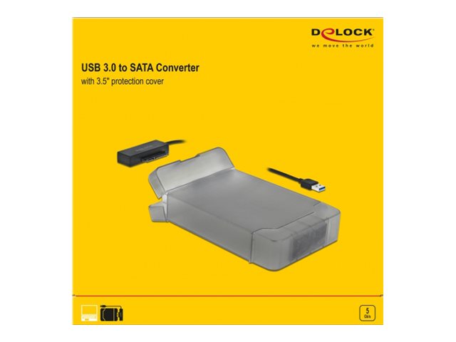 Produktbeskrivelse Delock USB Type-A to SATA Converter with 3.5" Protection Cover - interfaceadapter - SATA 6Gb/s - USB 3.0