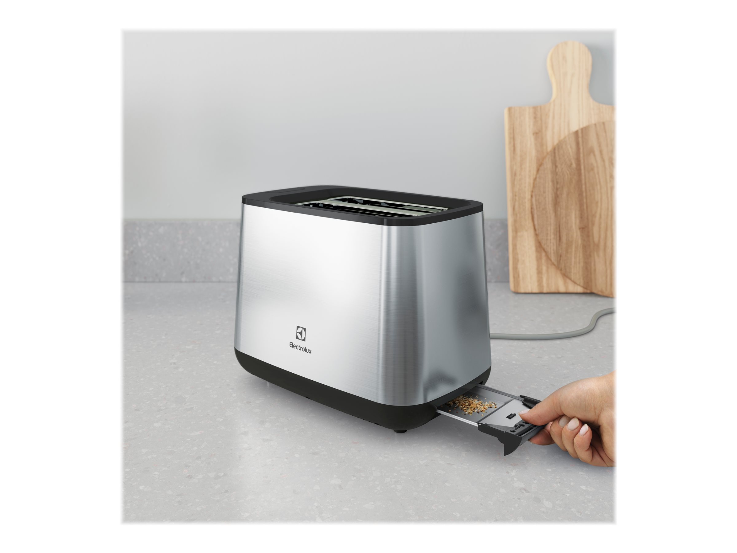 Electrolux Create 3 brødrister er designet til effektivitet og ydeevne, hvilket gør tilberedning af morgenmad til en leg. Dette apparat er fremstillet af holdbart rustfrit stål og sikrer lang levetid. Med et effektforbrug på 800 W leverer den hurtige og ensartede resultater og har to selvcentrerende riller, der nemt passer til forskellige brødtyper. Betjeningselementerne med trykknap og drejeknap giver en brugervenlig oplevelse og giver mulighed for præcise justeringer af de ønskede bruningsniveauer på tværs af syv indstillinger. Brødristeren har funktioner som genopvarmning, optøning og en annulleringsknap, hvilket giver alsidig brug. Den udskydelige krummebakke forenkler oprydningen og holder køkkenet pænt. Med en ledningslængde på 1 m og ledningsopbevaring for nem organisering tilføjer Electrolux Create 3 stil og bekvemmelighed til enhver bordplade.
