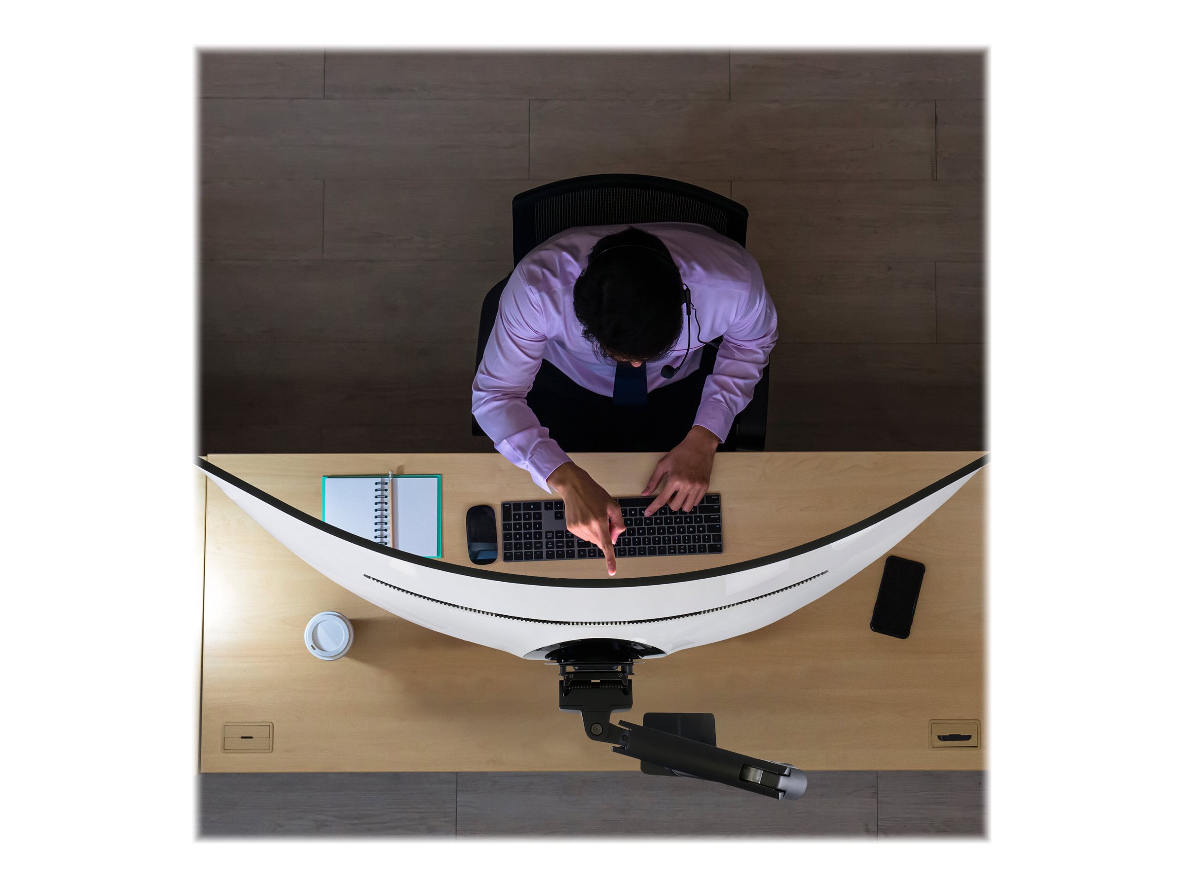 | Monteringskomponenter | Drejelig arm, klemme til montering på skrivebord, pakning til gennemføring, monterings-hardware, forlængerdel, HD-drejeled |