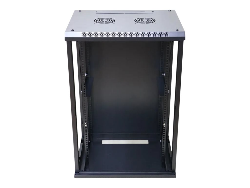 | Egenskaper | Övre och undre kabelingångspunkter, 180 graders dörröppning, dörr i tempererat glas, borttagbara sidopaneler, welded frame, 2 hål för fläktar upptill |