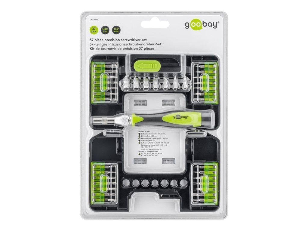 | Produktbeskrivelse | goobay - præcisionsskruetrækker med bit og sokkelsæt - 37 stykker |