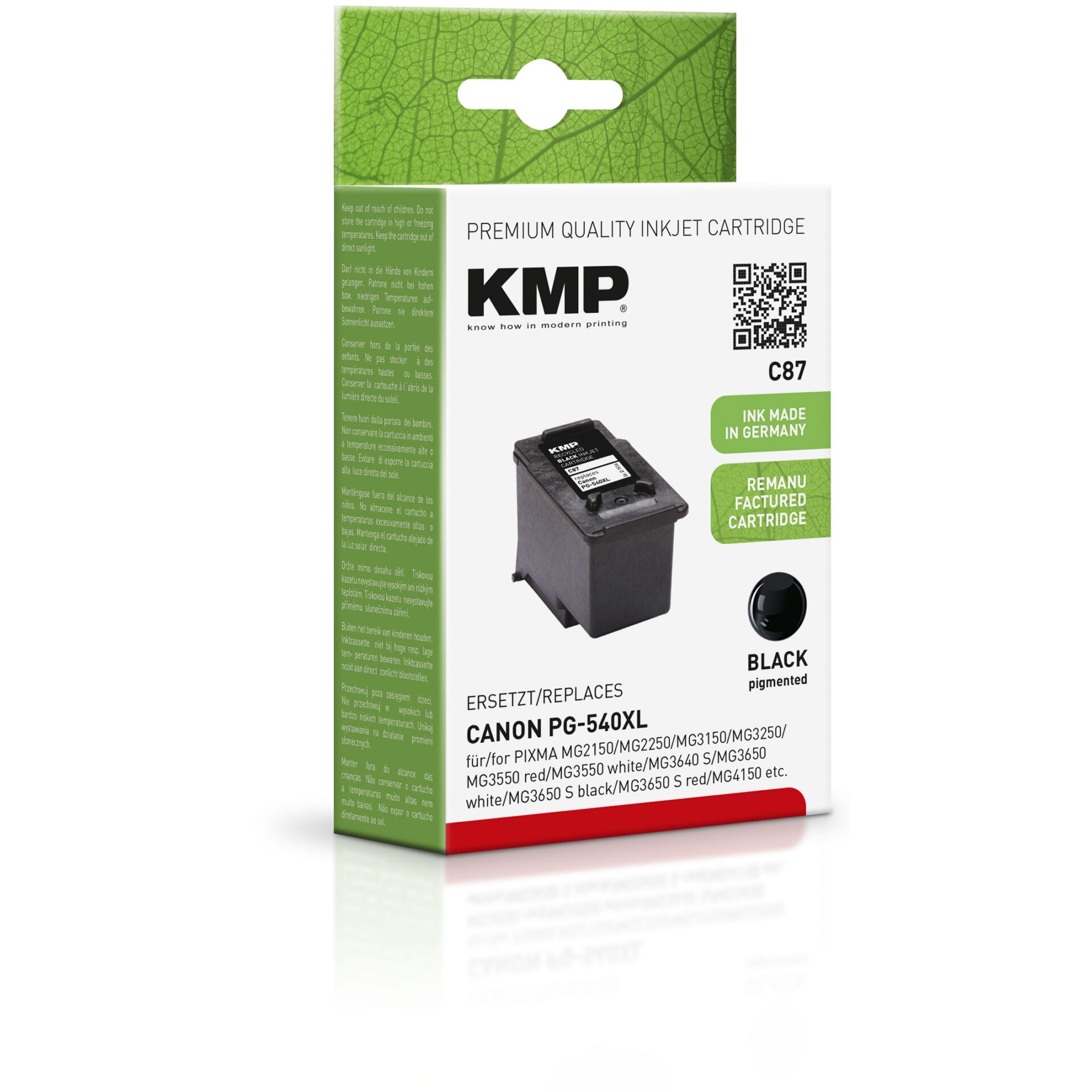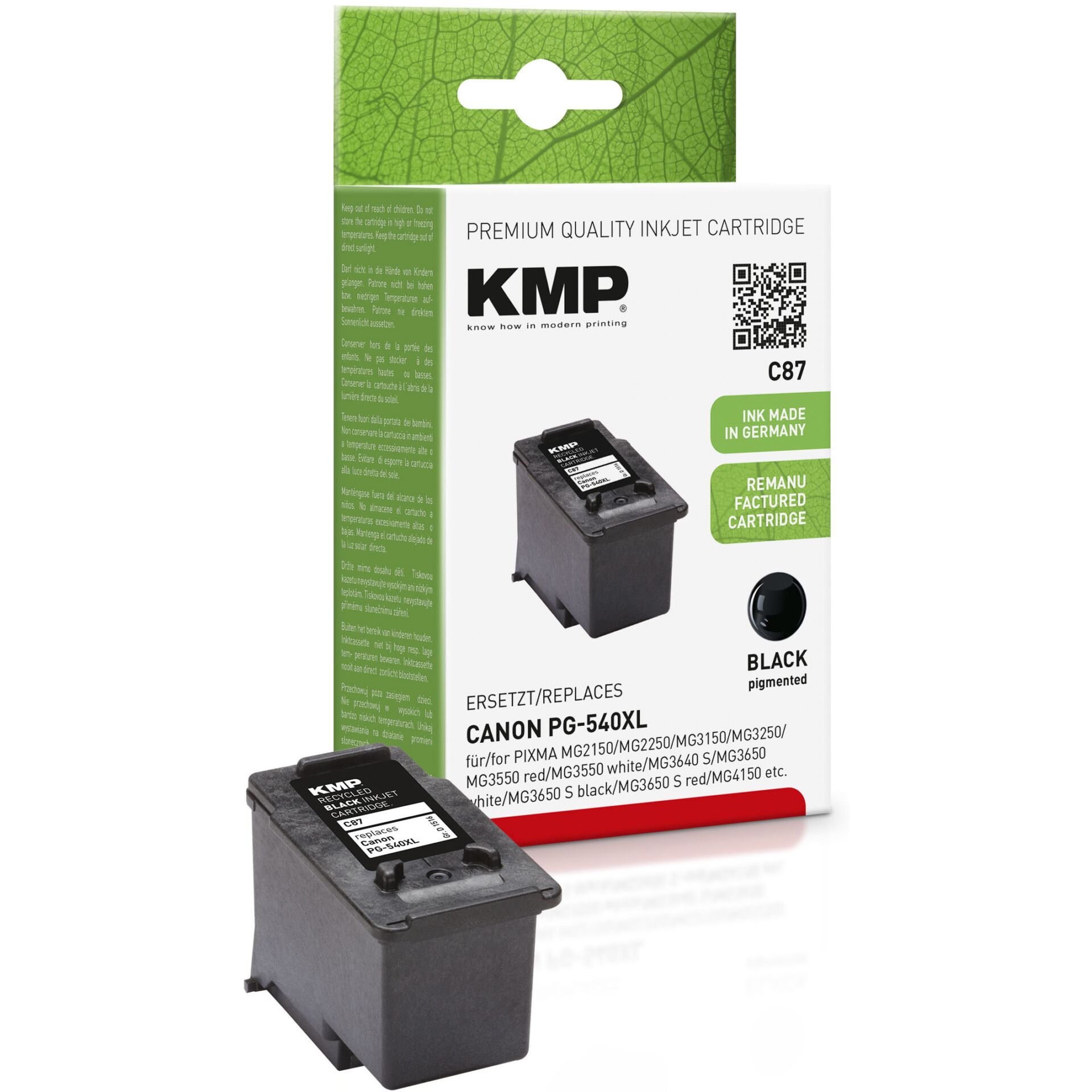 KMP C87 - 21 ml - sort - kompatibel - blækpatron (alternativ til: Canon 5222B005, Canon PG-540XL) - for Canon PIXMA MG3150, MG3550, MG3650, MG4250, MX395, MX475, MX525, MX535, TS5150, TS5151