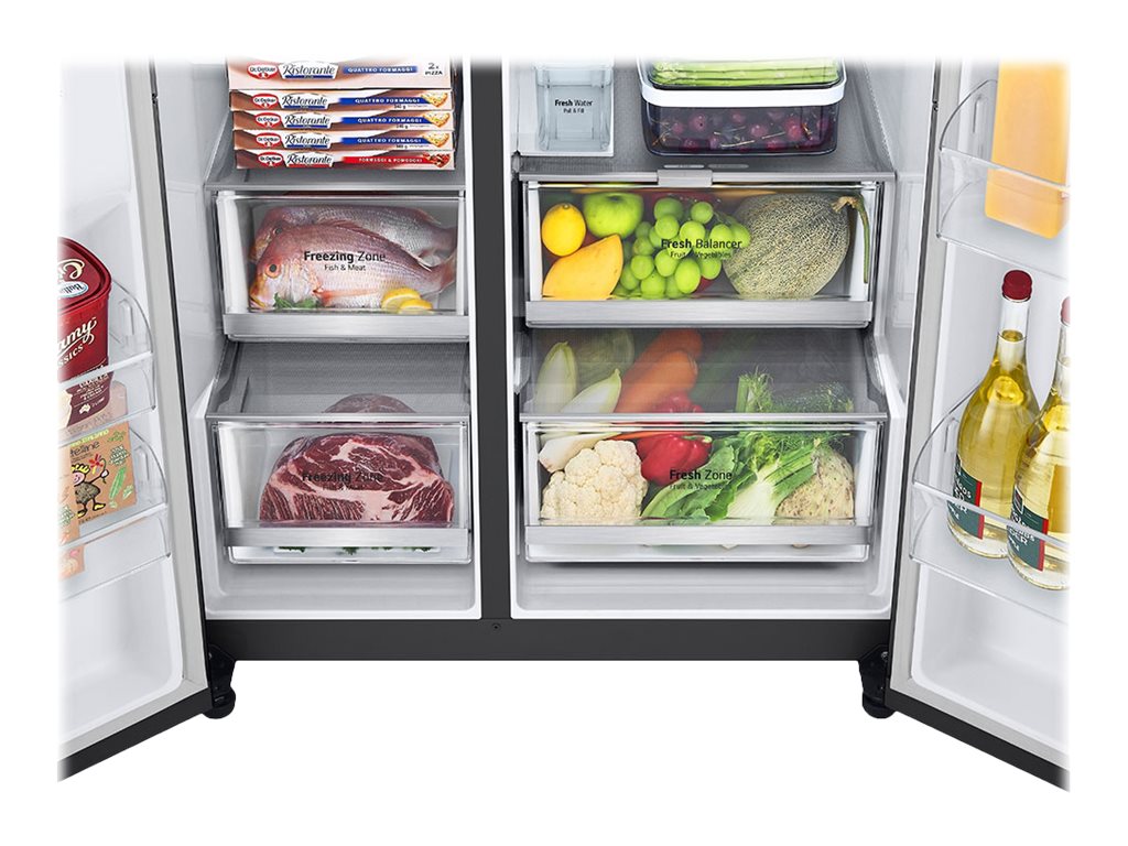 | Produktbeskrivelse | LG GSXV91MCAE - køleskab/fryser - side ved side - fritstående - matsort |