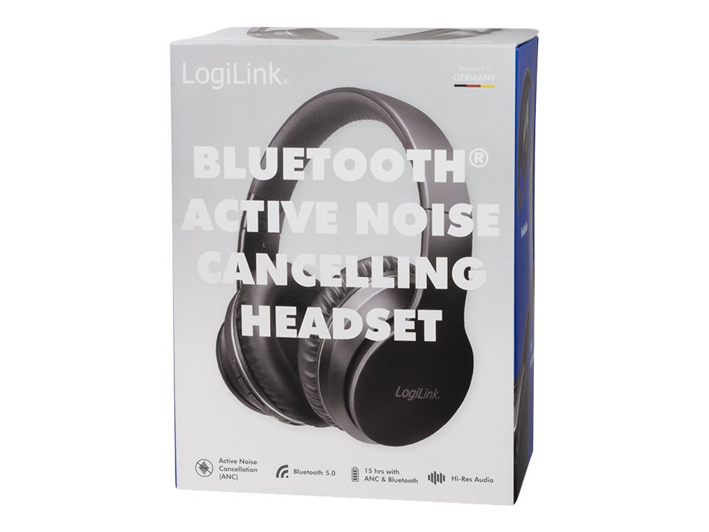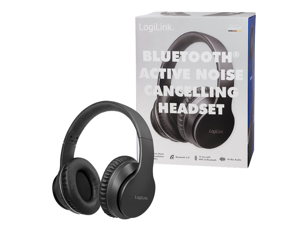LogiLink BT0053 - Headset - fuld størrelse - Bluetooth - trådløs - aktiv støjfjerning - sort