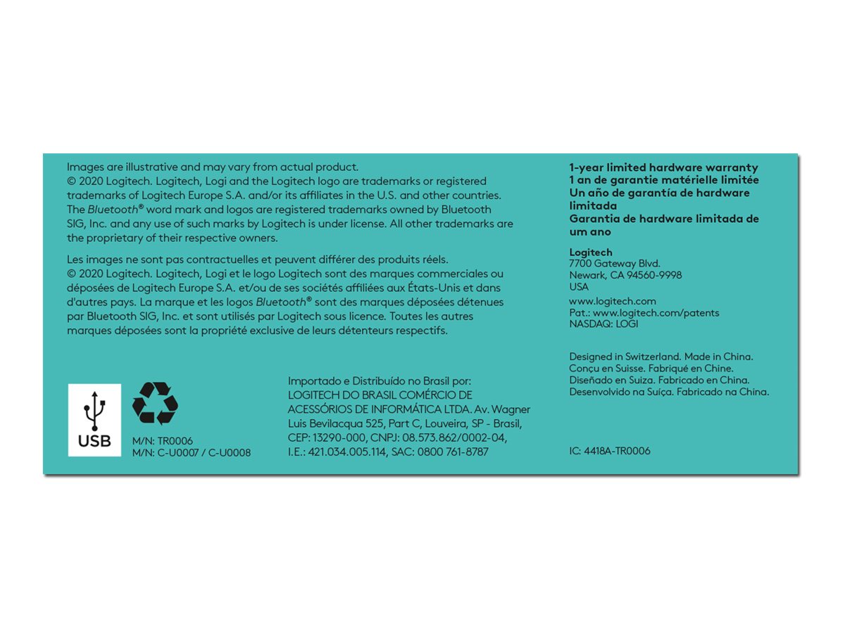 Forbliv opladet i op til 2 år med den medfølgende Unifying USB-modtager og op til 20 måneder med Bluetooth Low Energy