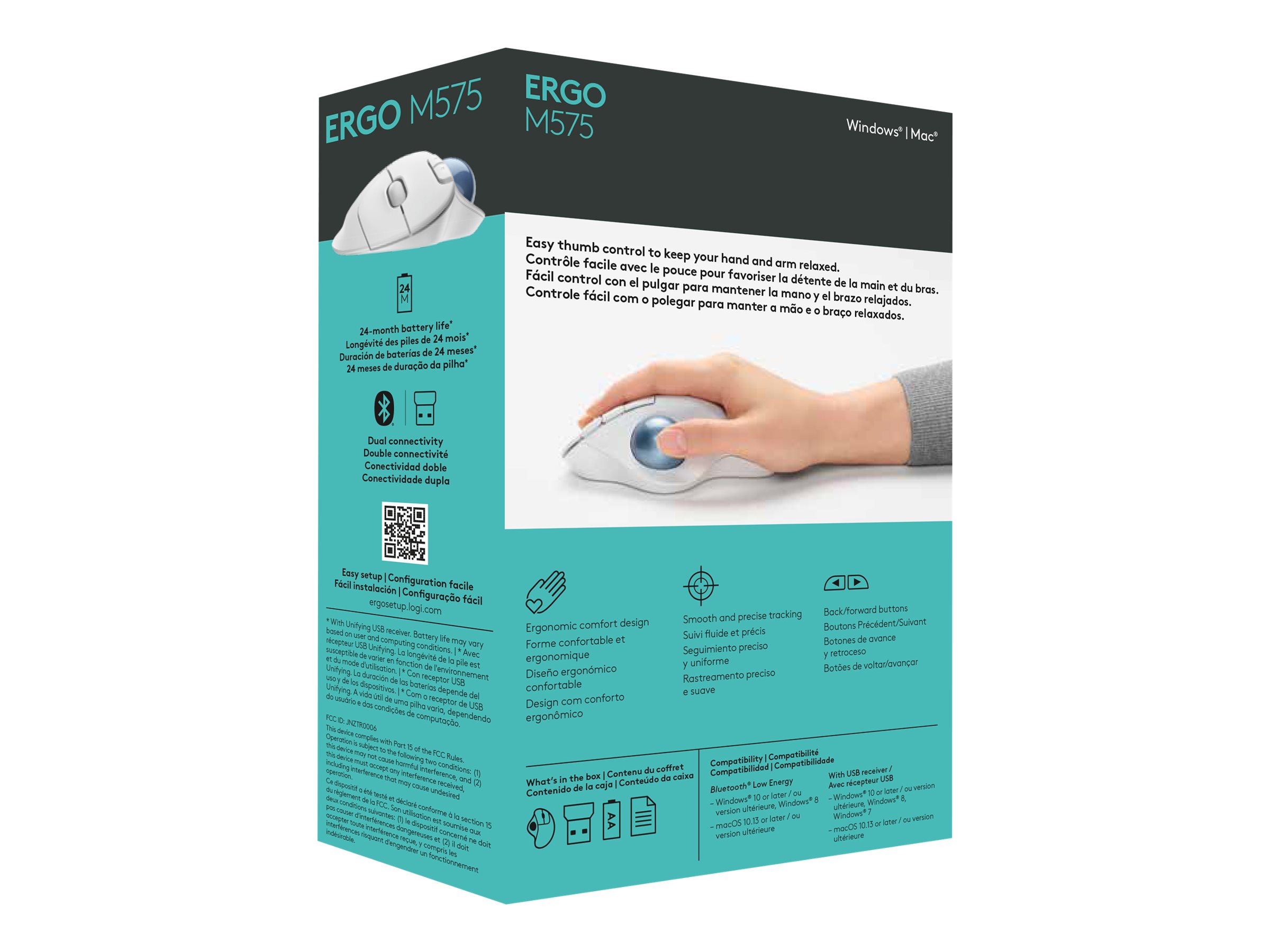 Minimer bevægelser og maksimer komforten med ERGO M575, en trådløs trackball med en skulpturel form og en smidig, responsiv tommelfingerbetjening. Den behøver ikke at blive flyttet, så den er perfekt til trange skrivebordspladser.
