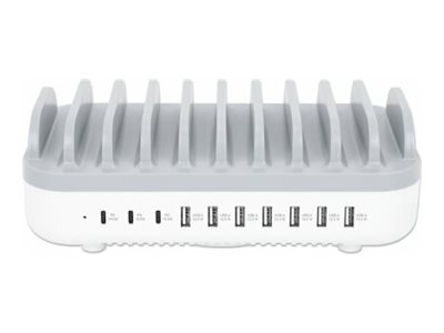 | Produktbeskrivelse | Manhattan Charging Station, 10x Ports: 3x USB-C (up to 18W PD) and 7x USB-A (up to 12W), 120W Total Output, White/Grey, Three Year Warranty, Box - opladningsstation - strømlevering - 120 Watt |