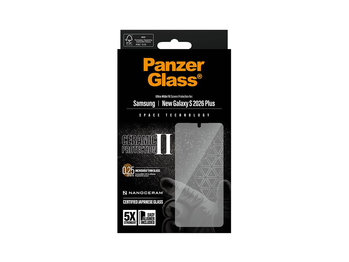 Med Ceramic Protection rækker PanzerGlass ud efter stjernerne og giver dig sin stærkeste skærmbeskytter til dato … ja, faktisk er Ceramic Protection hele 5 gange stærkere end vores stærkeste skærmbeskytter til dato! Det svarer til, at du kan lade en 320 g tung stålkugle falde fra 2,5 meter og ned på skærmbeskytteren, uden at den får så meget som en revne. Det er et tungtvejende argument, hvis du spørger os.Skærmbeskytteren er lavet af certificeret keramisk glas fra japanske Ohara. Keramisk glas er ikke blot et af verdens mest ridsefaste materialer, men indeholder også ikke-synlige krystaller, der forhindrer revner i at sprede sig. Det giver keramisk glas en styrke, som ikke kan opnås med konventionelt skærmbeskytterglas. Og som om det ikke var nok, sikrer Oharas nano-krystalliseringsteknik en hidtil uset klarhed i glasset, som endda er udstyret med en smudsafvisende belægning, der reducerer fedtfingre og snavs.Den medfølgende EasyAligner gør installationen så legende let, at de fleste kan klare den i første forsøg. Og ellers er det bare at følge trin-for-trin-guiden eller scanne QR-koden til sådan-installerer-du-videoen. Når først skærmbeskyttelsen sidder på telefonen, er det slut med at frygte synet af din skærm med kurs mod asfalten. Det kommer muligvis aldrig til at ske, men hvis det gør, vil du fortryde, at du ikke klikkede "Tilføj til kurv".Skærmbeskytteren har størrelsen "Ultra-Wide Fit". Det betyder, at den dækker fronten af din telefon, samtidig med at den giver dig en fuldendt skærmoplevelse og efterlader lidt plads langs kanterne til et beskyttende cover fra PanzerGlass . Og vil du passe ekstra godt på din telefon, kan du nemt kombinere skærmbeskytteren og coveret med en PanzerGlass PicturePerfect eller Hoops kameralinsebeskytter.Dette produkt bliver leveret i en FSC -mærket æske, der kan genanvendes.