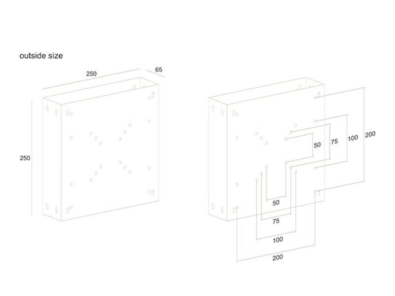 | VESA-monteringsinterface | 100 x 100 mm, 75 x 75 mm, 200 x 200 mm, 50 x 50 mm, 200 x 100 mm |