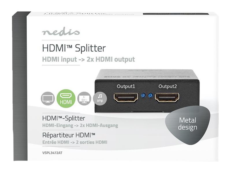 | Produktbeskrivelse | Nedis VSPL3472AT - video-/audiosplitter - 2 porte |