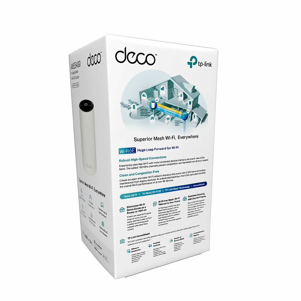 | Produktbeskrivelse | TP-Link Deco XE75 V1 - Wi-Fi-system - Wi-Fi 6 - desktop |