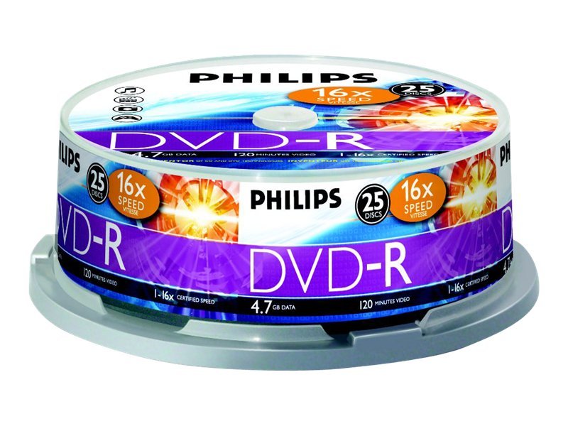| Produktbeskrivelse | Philips DM4S6B25F - DVD-R x 25 - 4.7 GB - lagringsmedie |
