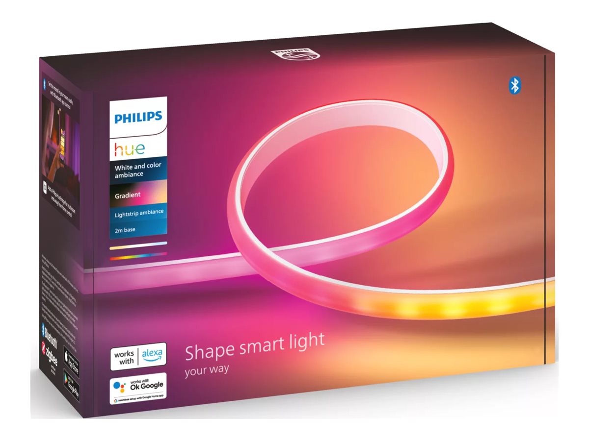Med gradient-teknologien og et fleksibelt design er Philips Hue Gradient lightstrip en effektfuld blanding af farverigt lys til ethvert rum i dit hjem.
