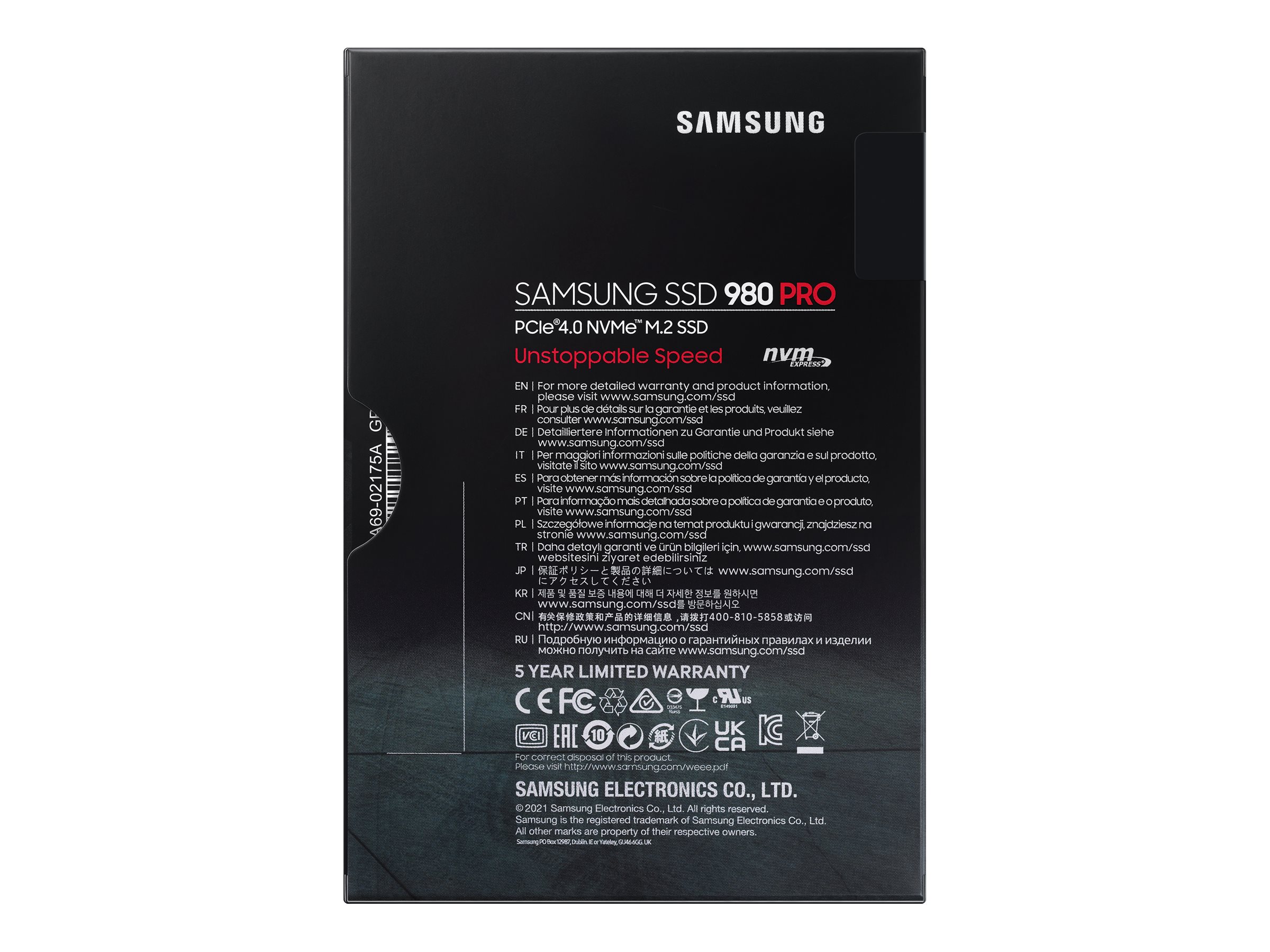 980 PRO leveres i det kompakte M.2 2280-format, som er nemt at montere i stationære og bærbare computere og giver maksimal fleksibilitet i det tekniske design. Drevets optimerede strømforbrug gør det velegnet til konstruktion af højtydende computersystemer.