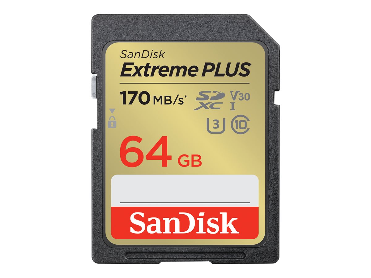 | Produktbeskrivelse | SanDisk Extreme PLUS - flashhukommelseskort - 64 GB - SDXC UHS-I |