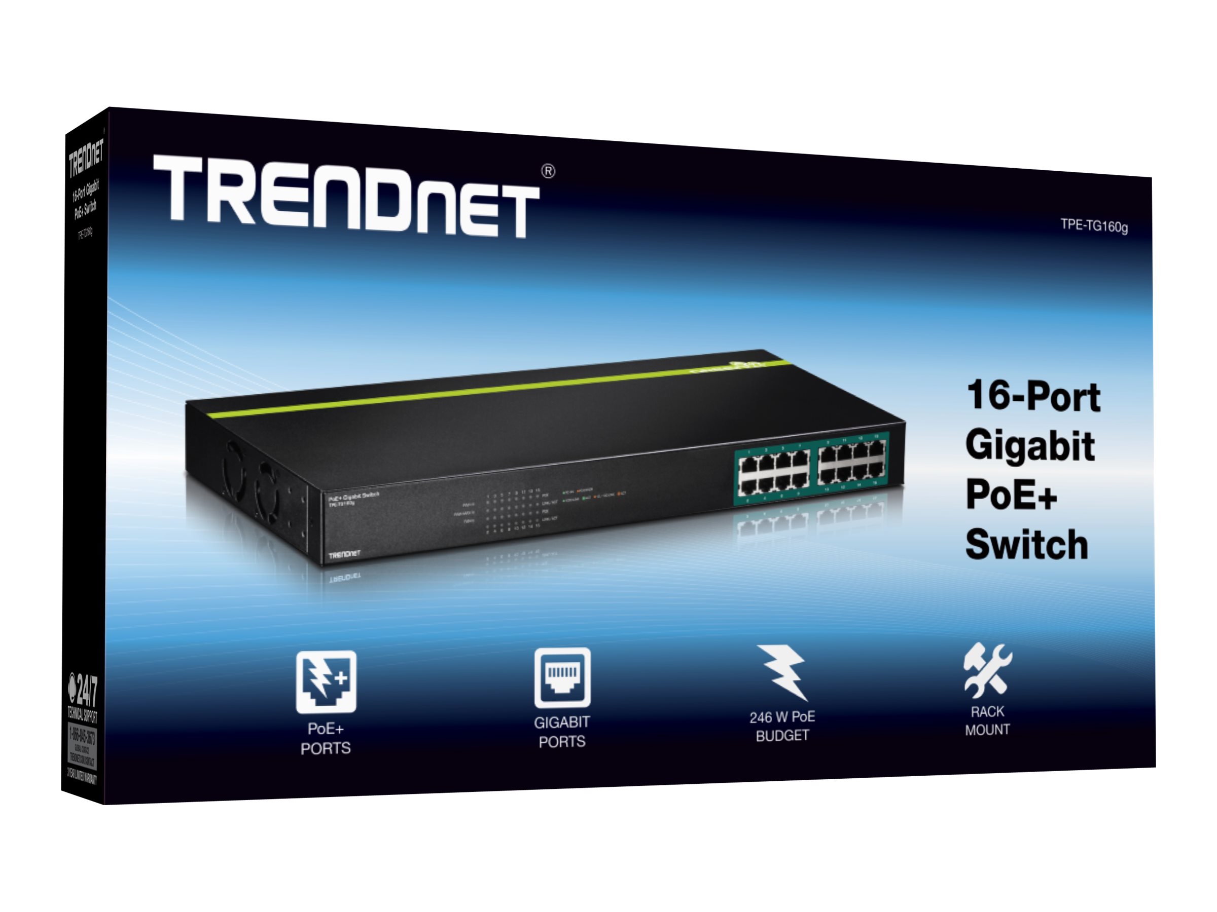 | Produktbeskrivelse | TRENDnet TPE TG160G - switch - 16 porte - monterbar på stativ - TAA-kompatibel |
