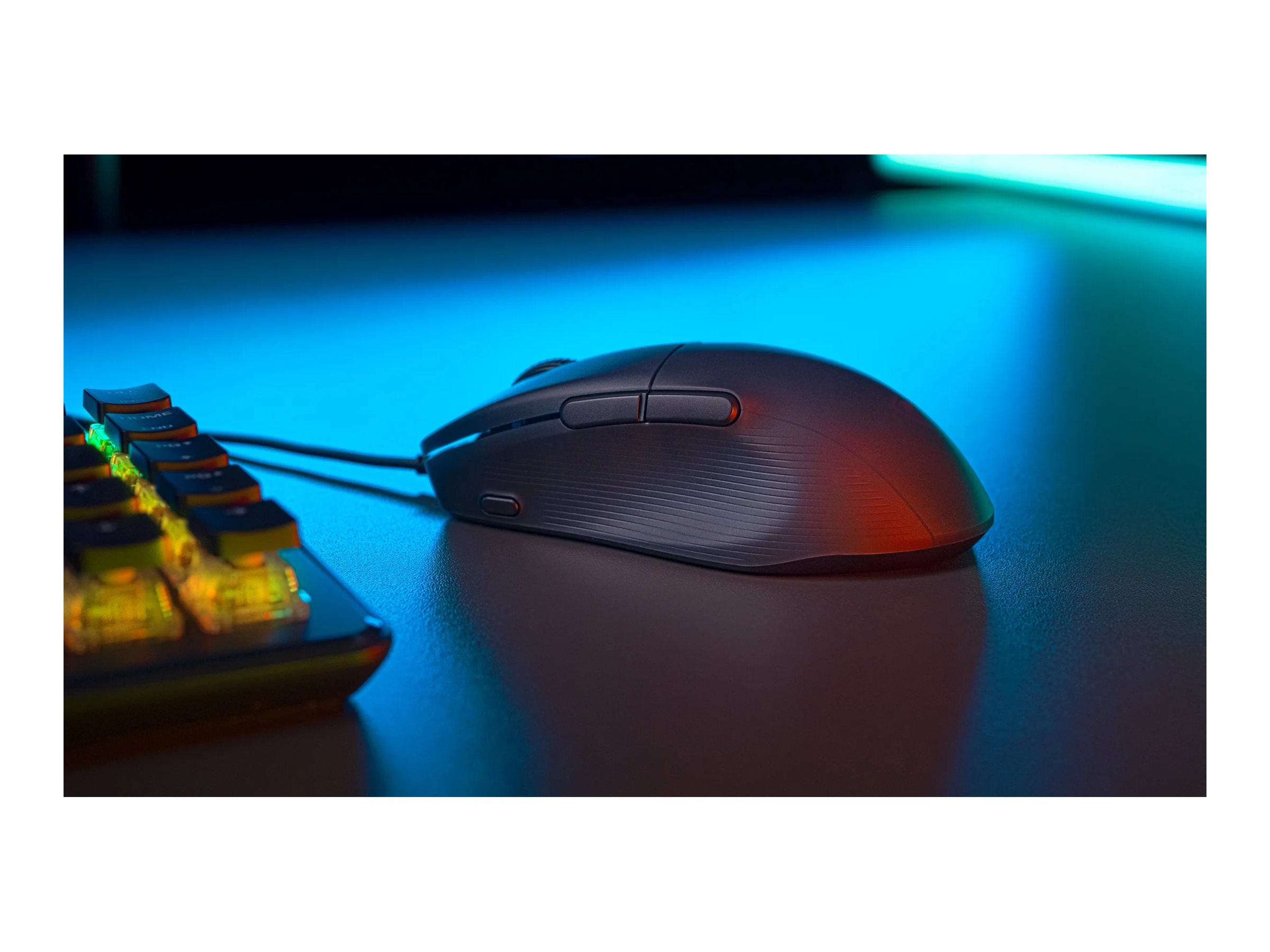 | Egenskaber | Polytetrafluoroethylene (PTFE) feet, justerbar elevatordistance, mekaniske kontakter, NVIDIA Reflex, hukommelse ombord, Pixart PAW 3318 optisk sensor, AIMO belysningssystem |
