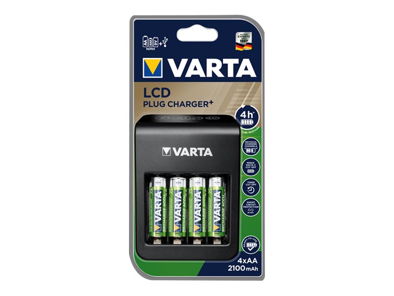 | Produktbeskrivelse | Varta LCD Plug Charger+ batterioplader/strømadapter - 4 x AA type - NiMH - USB |
