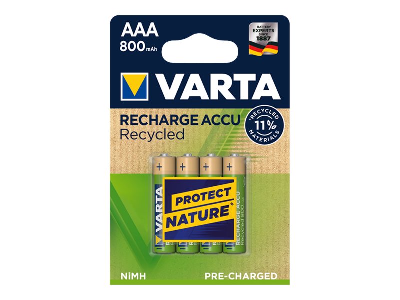 | Produktbeskrivelse | Varta Recharge Accu Recycled 56813 batteri - 4 x AAA - NiMH |