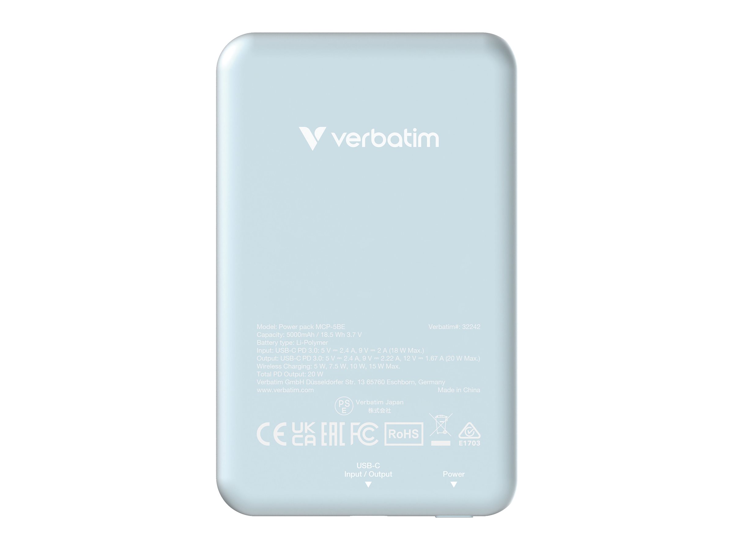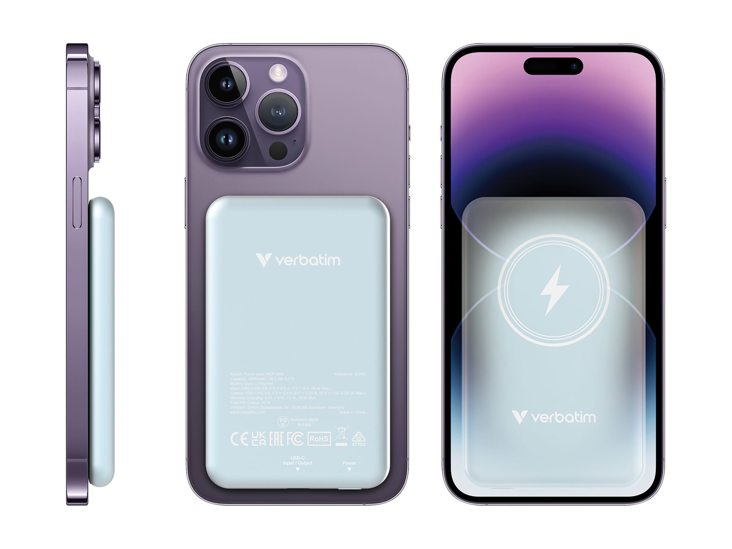 | Produktbeskrivelse | Verbatim Charge 'n' Go trådløs power bank - magnetisk montering - Li-pol - USB-C - 20 Watt |
