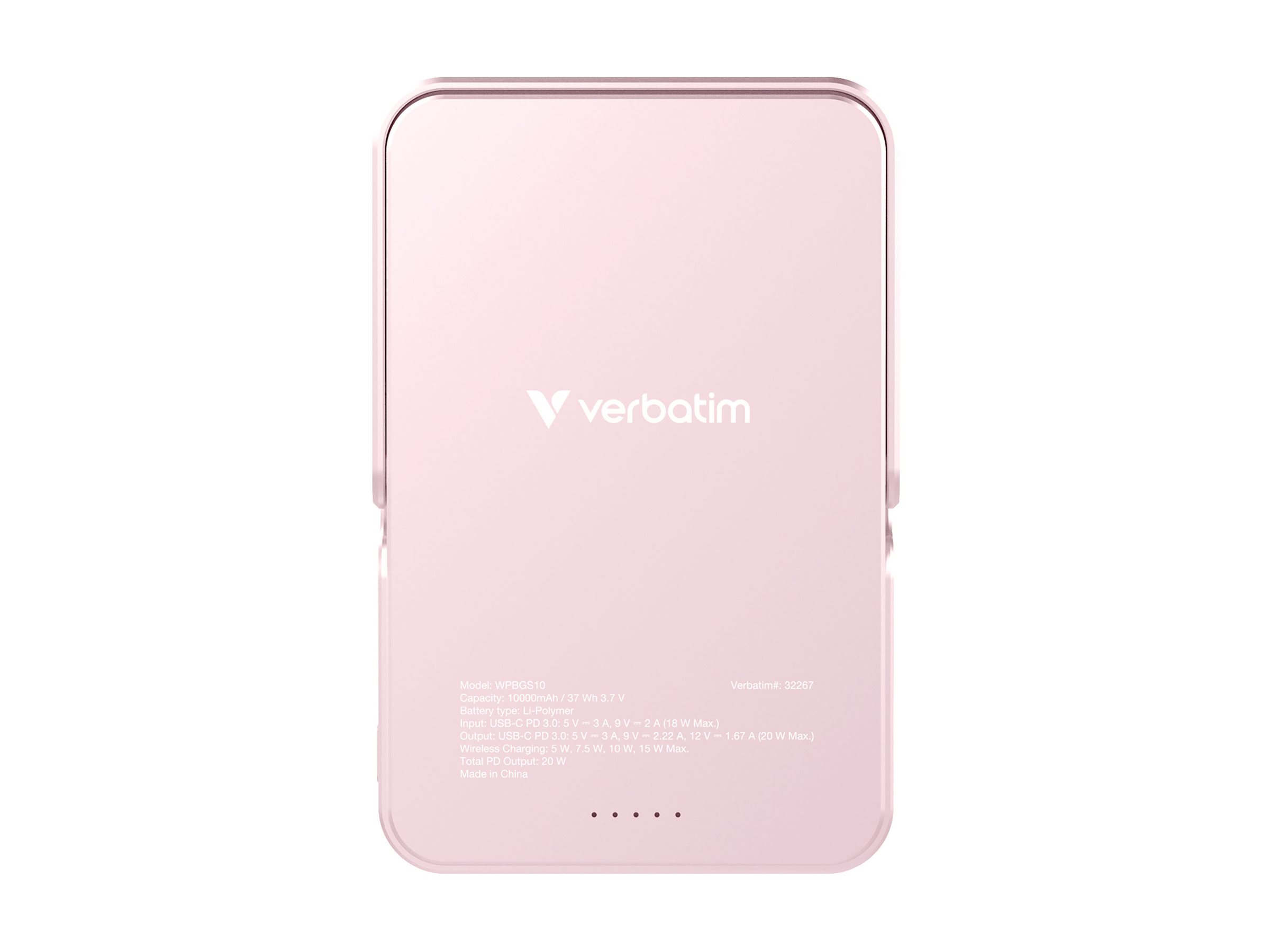 | Produktbeskrivelse | Verbatim Charge 'n' Go trådløs power bank - magnetisk, med stativ - Li-pol - USB-C - 20 Watt |