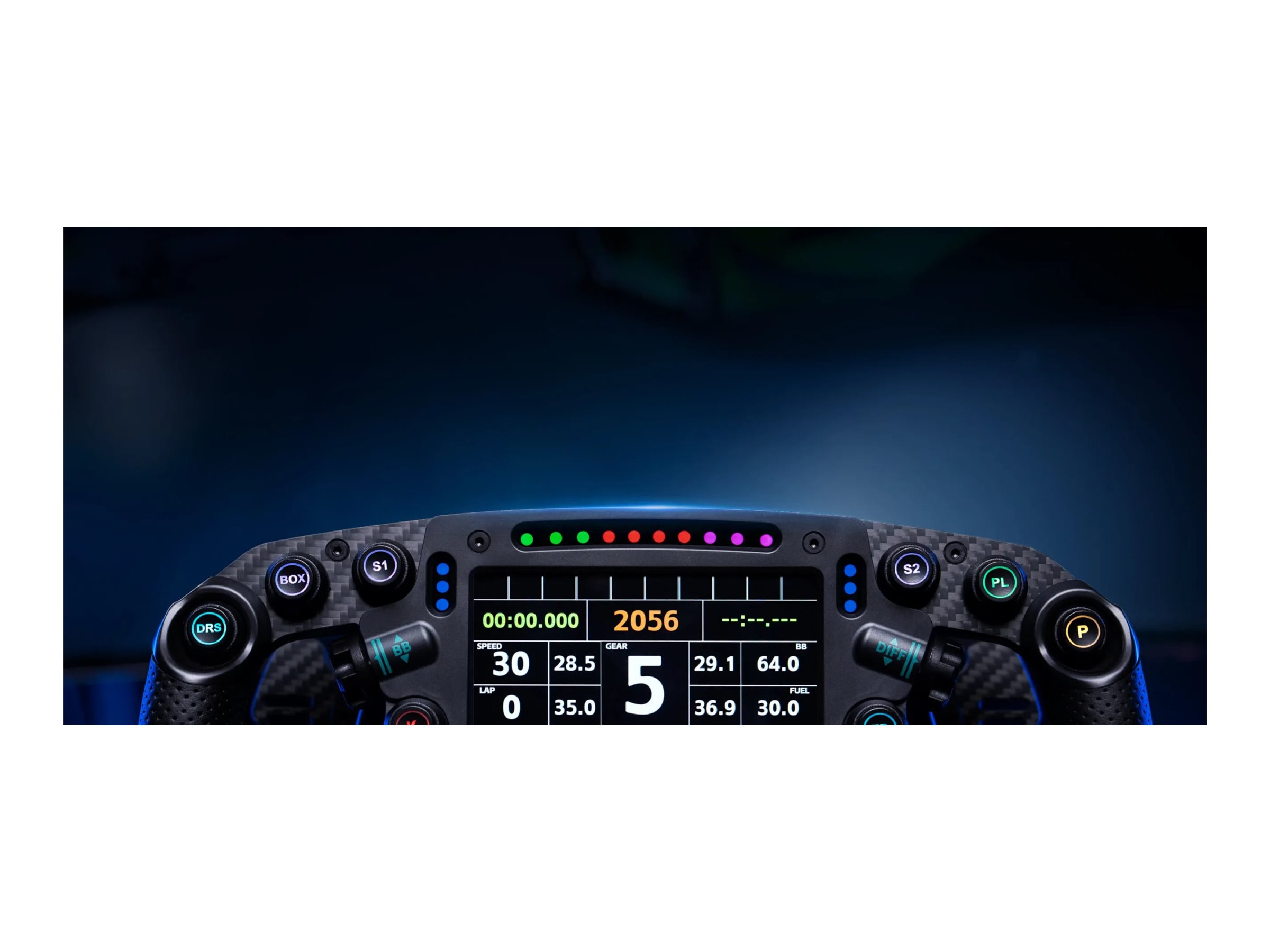 FSR2 Formula Wheel er udstyret med 10 knapper, 2 tommelfinger-enkodere, 5 drejeknapper, 2 7-vejs kontakter og 6 paddles, hvilket giver en omfattende kontrolopsætning, der forbedrer racingoplevelsen.