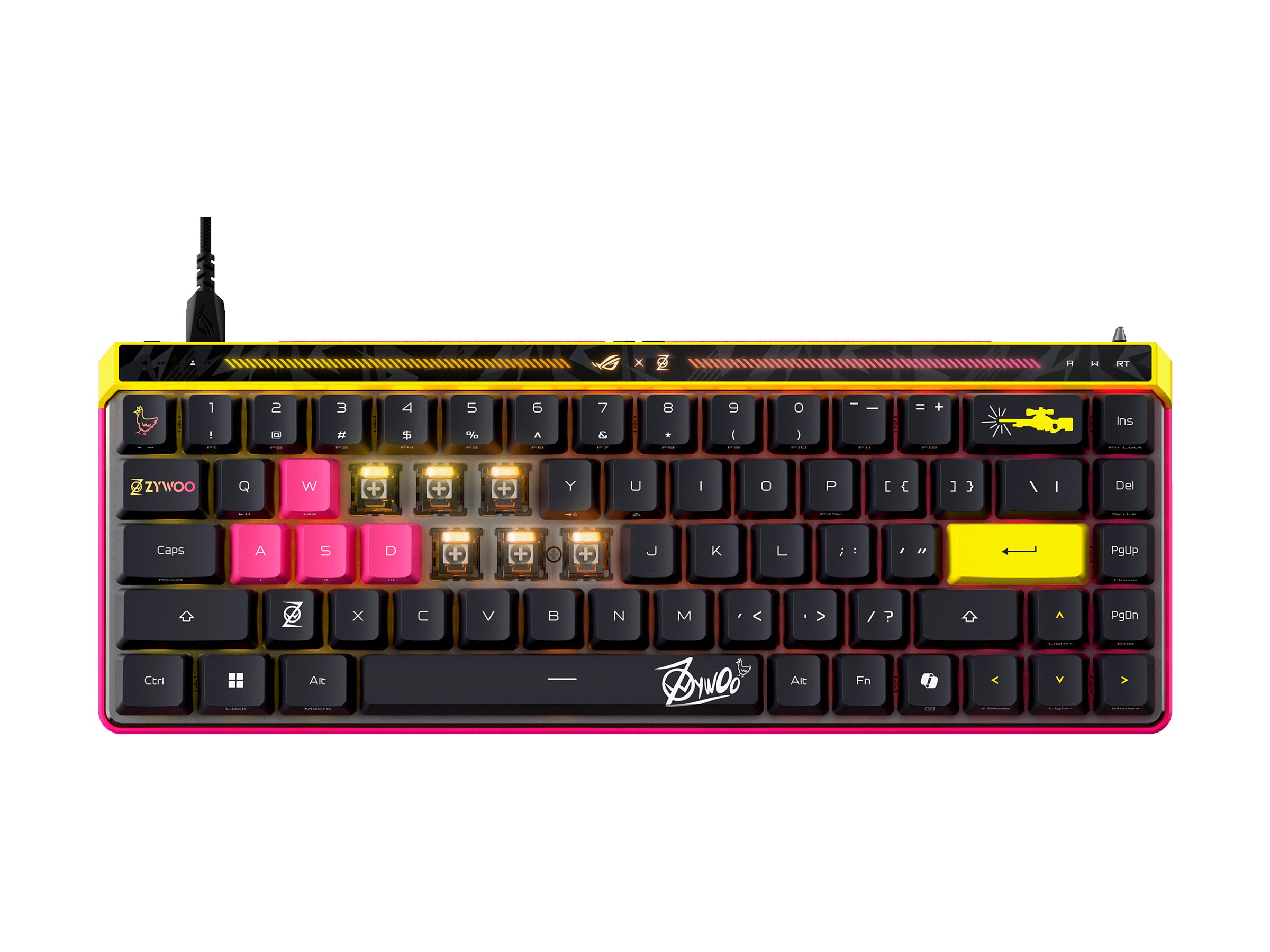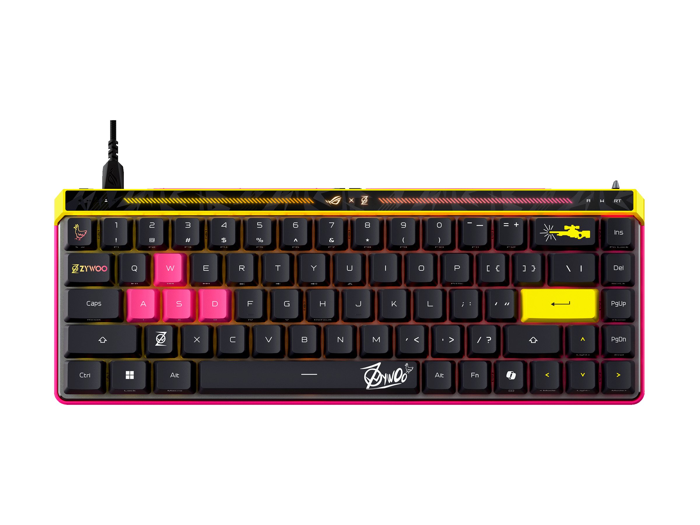 | Produktbeskrivelse | ASUS ROG Falchion Ace HFX - ZywOo Edition - tastatur - 65% compact - med berøringspanel - QWERTY - USA - sort Indgangsudstyr |