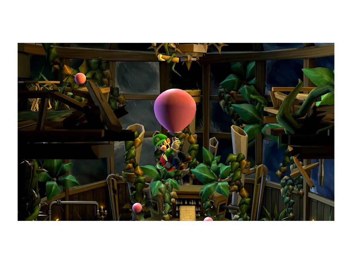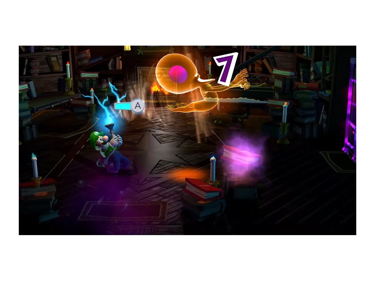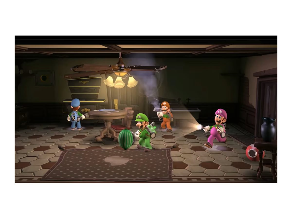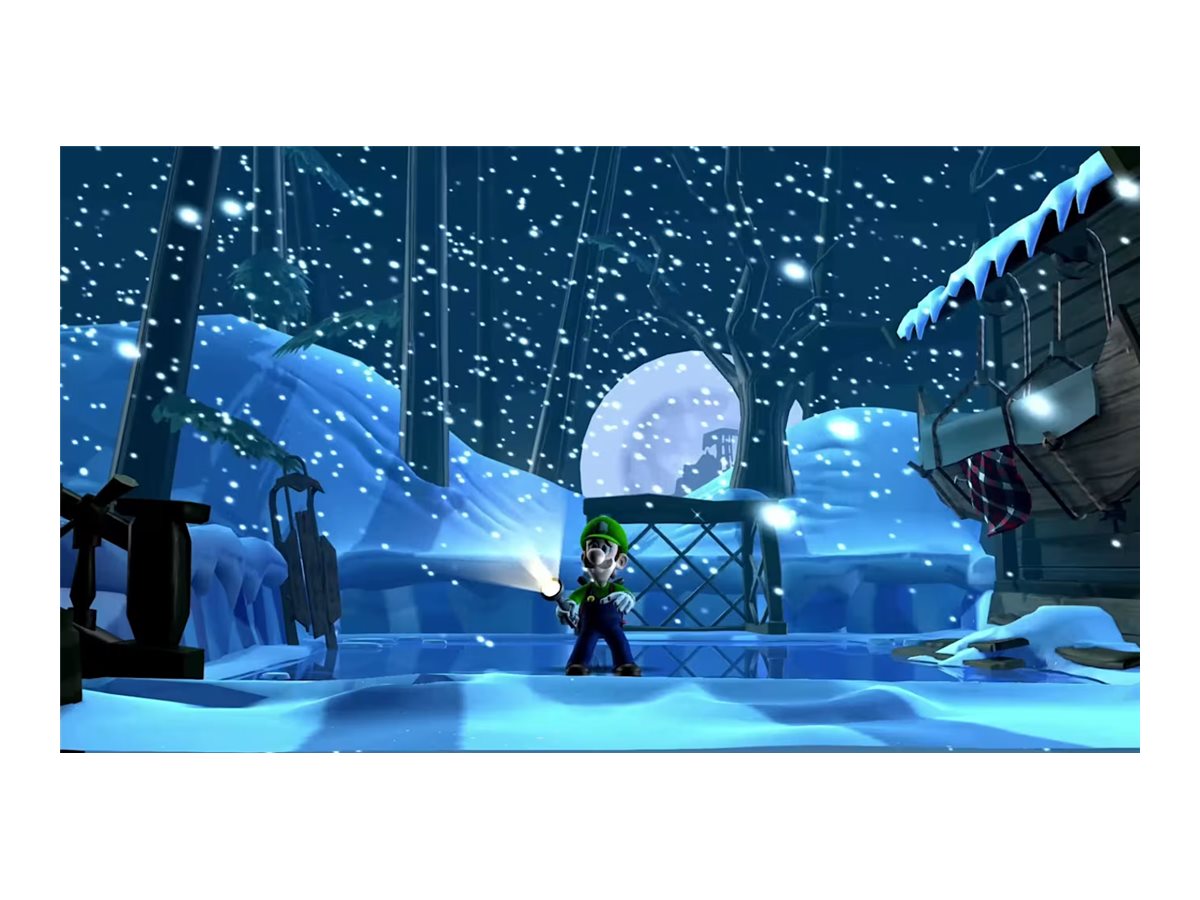 Gå gennem forskellige missioner for at hente de manglende skår af den mørke måne, der er spredt over flere forskellige hjemsøgte palæer, hver med deres egne gåder, der skal løses, og spøgelser, der skal fanges. Gå efter en høj karakter ved at bruge dit superkraftige spøgelsesjagtværktøj, Poltergust 5000, til at suge spøgelser (og vinduesgardiner) op og blæse luft for at gennemsøge hver en krog af de kølige, men charmerende palæer. Dette uhyggelige og sjove eventyr, som oprindeligt udkom til Nintendo 3DS-systemet, er nu visuelt forbedret i HD på Nintendo Switch-systemet.
