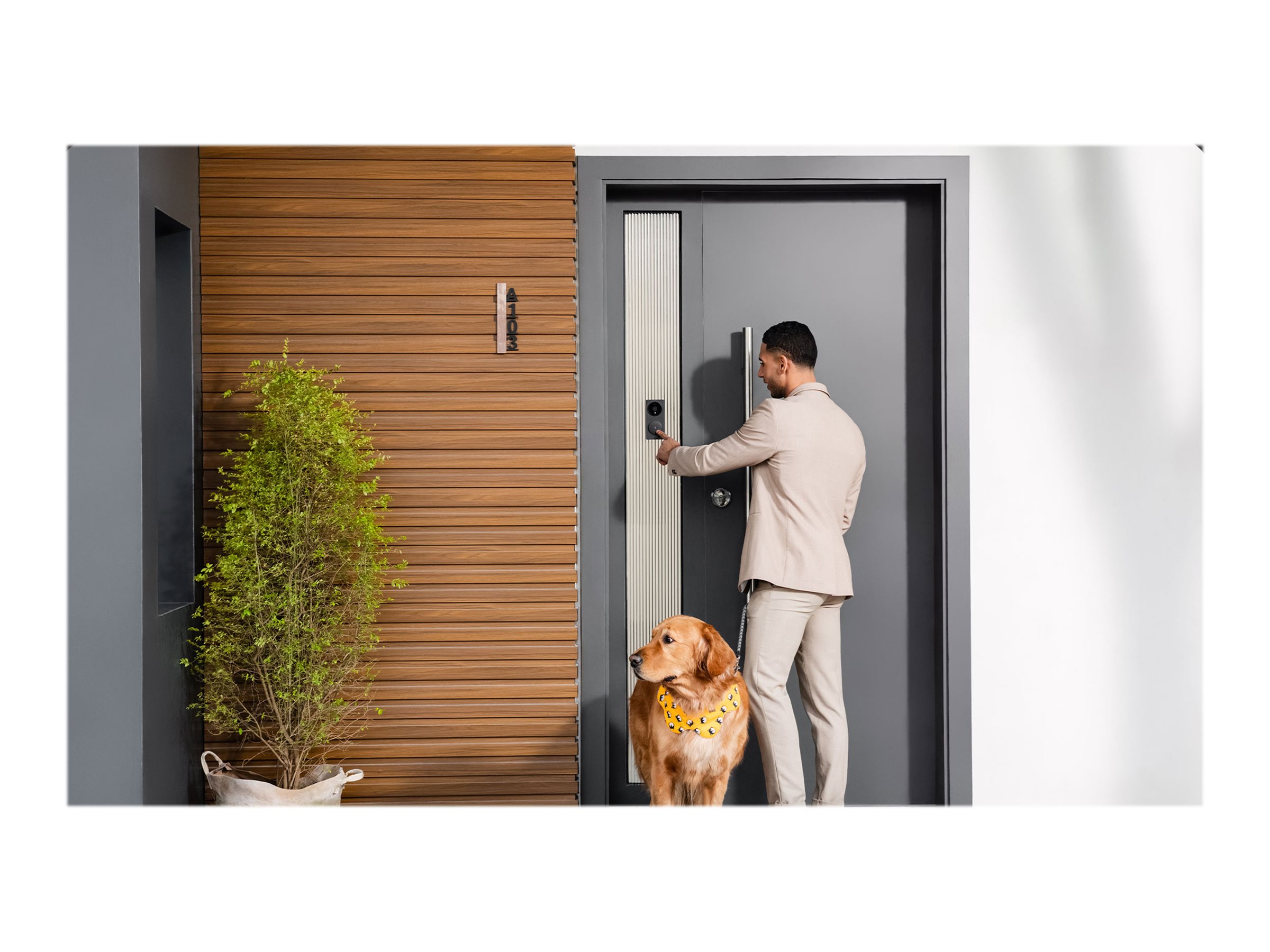 Takket være et vidvinkel-synsfelt på 162°, en skarp 1080p-sensor og infrarødt nattesyn ser du det tydeligt, uanset om det er dag eller nat. Du kan tjekke ud og reagere på det via tovejslyd når som helst og hvor som helst.