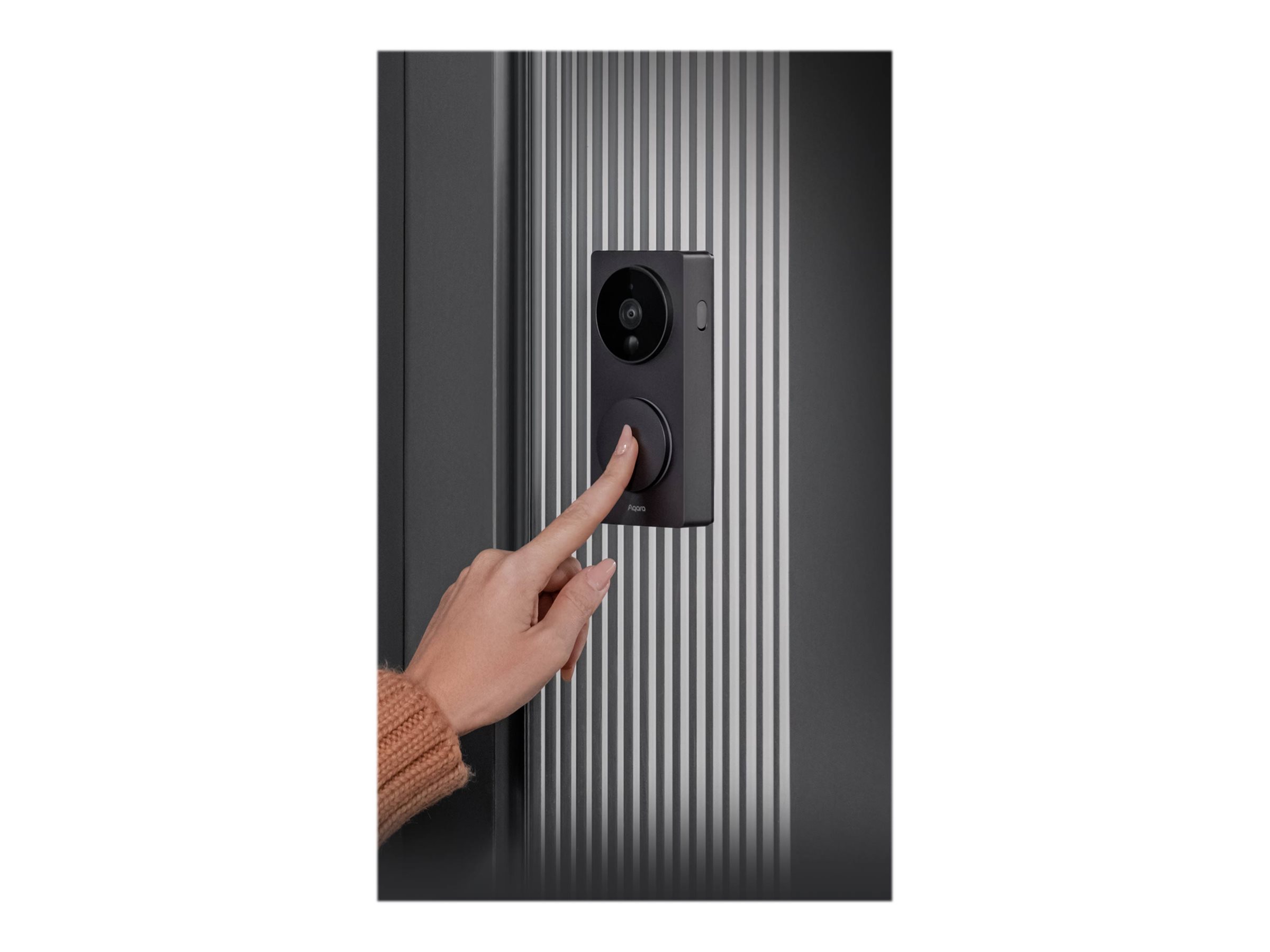 Aqara Smart Video Doorbell G4 består af en udendørs dørklokke og en indendørs repeater. Når dørklokken registrerer besøgende, der ringer på, hænger ud eller går ind, begynder den at optage og sender en notifikation via appen. Ansigtsgenkendelsessoftwaren, som kører lokalt på enheden, kan indstilles til at genkende besøgende. Dørklokkens 2-megapixelkamera har en linse med et vidvinkel-synsfelt på 162" og er udstyret med et 940 nm infrarødt nattesynsfyldningslys, der er usynligt for menneskers øjne. Den indbyggede højttaler muliggør tovejskommunikation med besøgende og kan også ændre ejerens stemme for ekstra privatliv. Dørklokken har også en sabotagealarmfunktion, så du kan vække den når som helst via appen for at tjekke den udendørs situation. Dørklokken drives af 6 AA-batterier, og dens ultra-lave strømforbrug er designet til at garantere en ultra-lang levetid. Dette produkt skal drives af en certificeret SELV- eller klasse 2 AC-AC/DC-konverter med matchende parametre. Et MicroSD-kort kan indsættes i repeateren til lokal lagring, og der er også et kileformet beslag med en fast vinkel på 20° til at justere objektivets retning. Dette produkt kan forbindes til Aqara Home-appen og Apple HomeKit for at muliggøre mere smart identifikation og kontrolfunktionalitet.