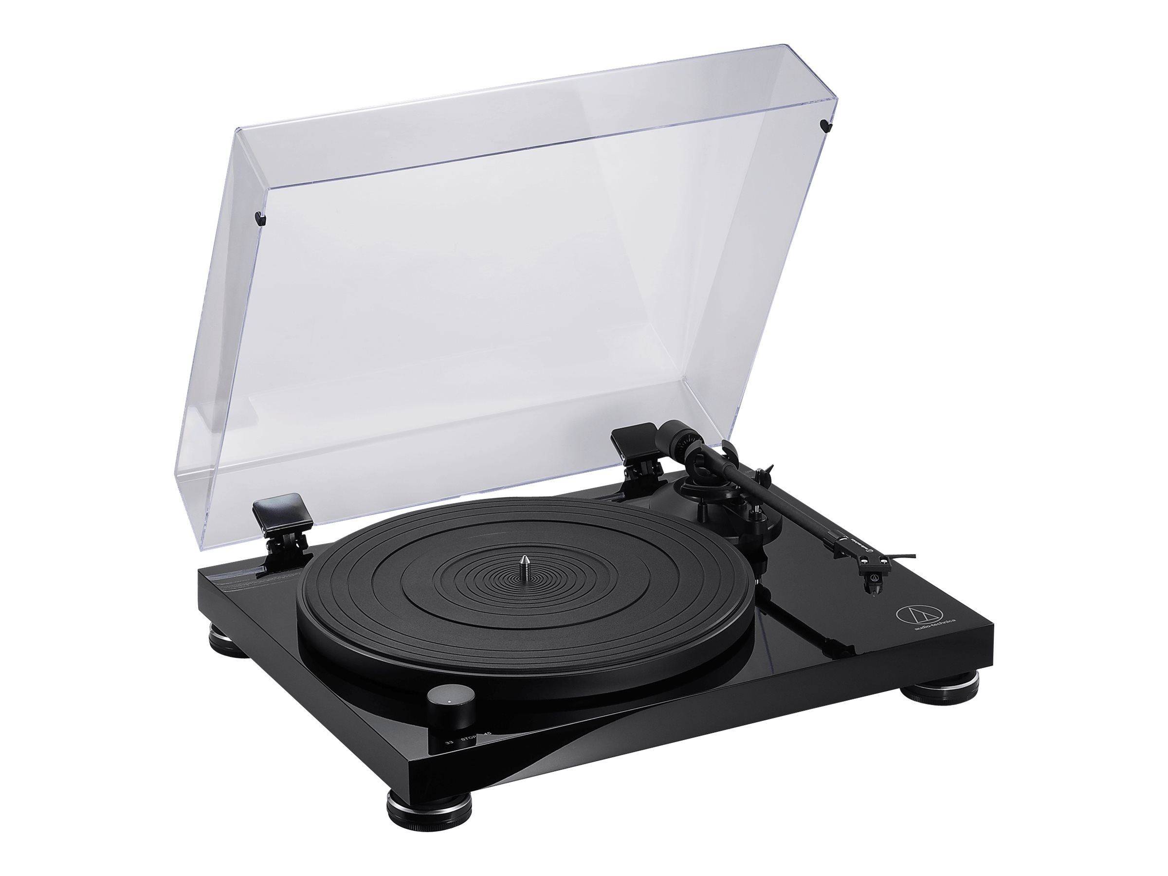 AT-LPW50PB er kendetegnet ved den højglansede, pianosorte finish på dens antiresonans-sokkel og har et elegant, moderne design, der matcher den sensorovervågede motors suveræne præcision.
