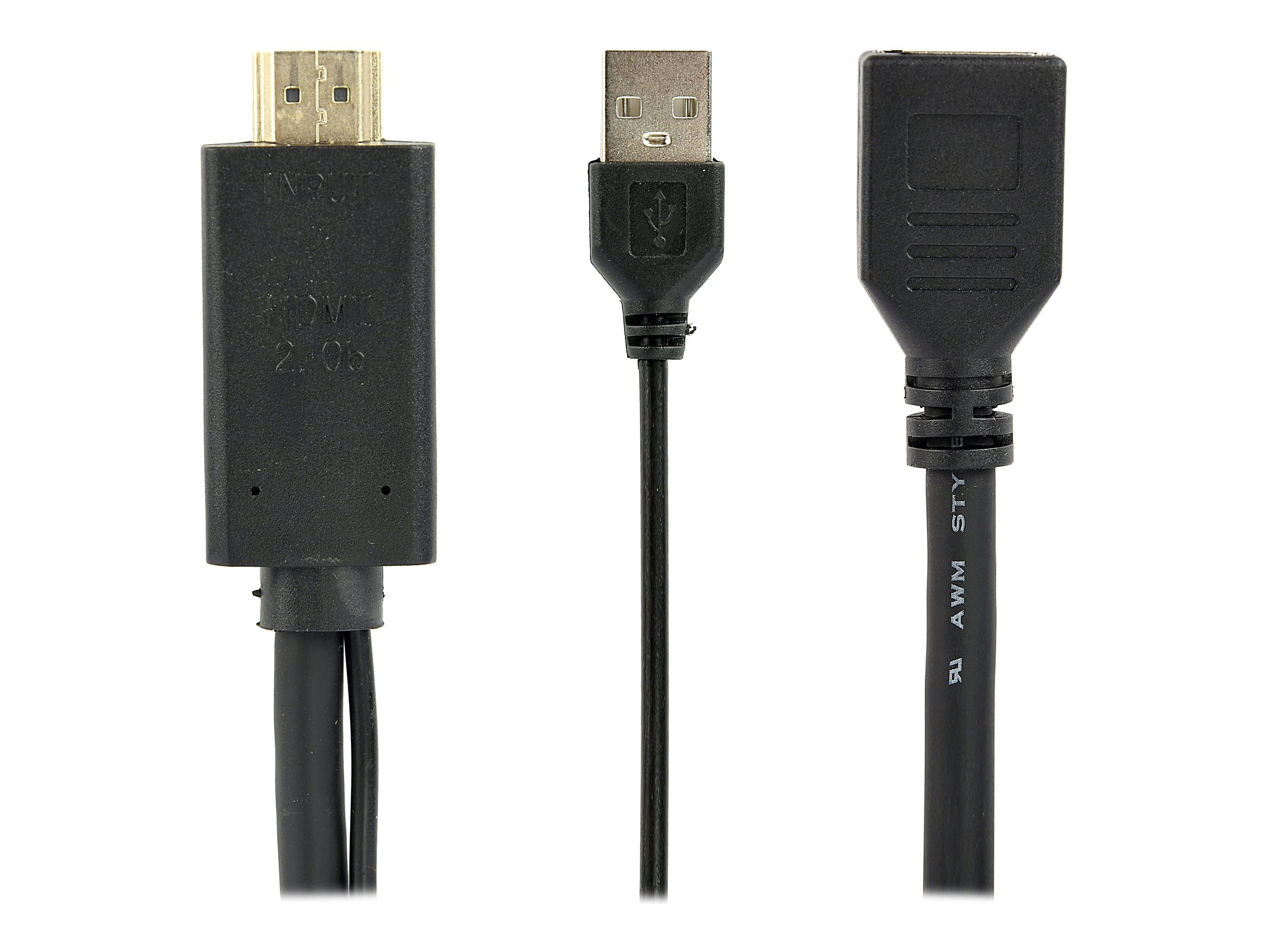 Kontakter (andra änden) 4-stifts USB typ A (endast ström) - hane | 19-stifts HDMI typ A - hane
