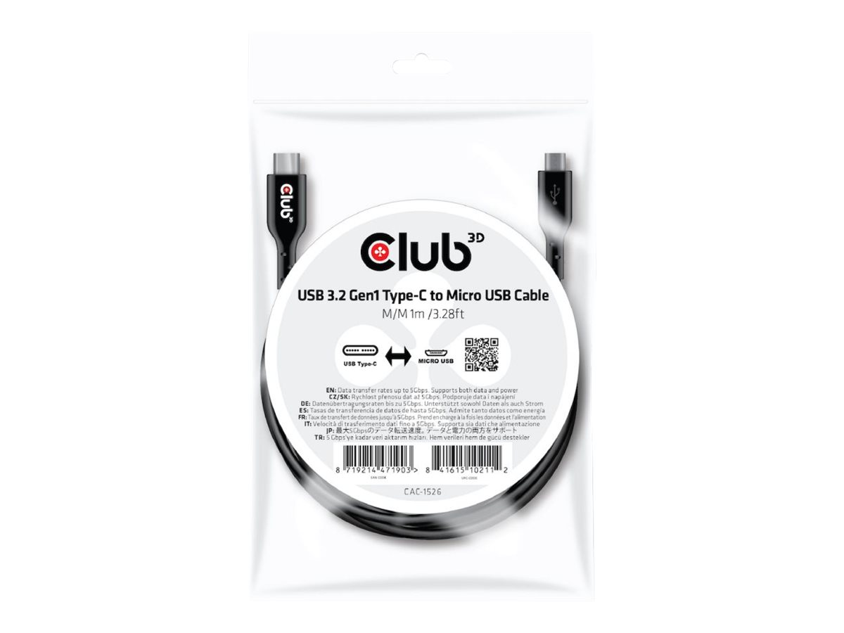| Produktbeskrivelse | Club 3D - USB Type-C kabel - USB-C til Micro-USB Type B - 1 m |
