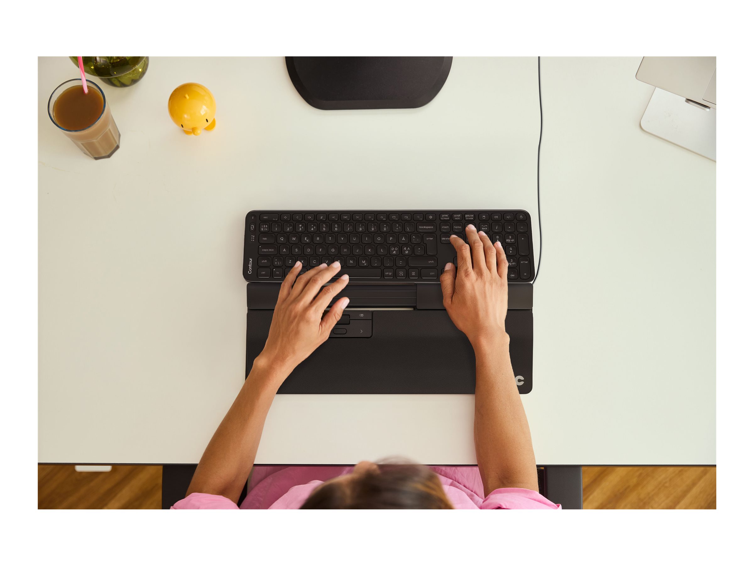 SliderMouse Pro gør det nemt at skifte mellem at skrive og bruge musen. Håndledsstøtten støtter hver bevægelse, mens den glatte overflade i vegansk læder lader din hånd glide naturligt fra tast til markør.