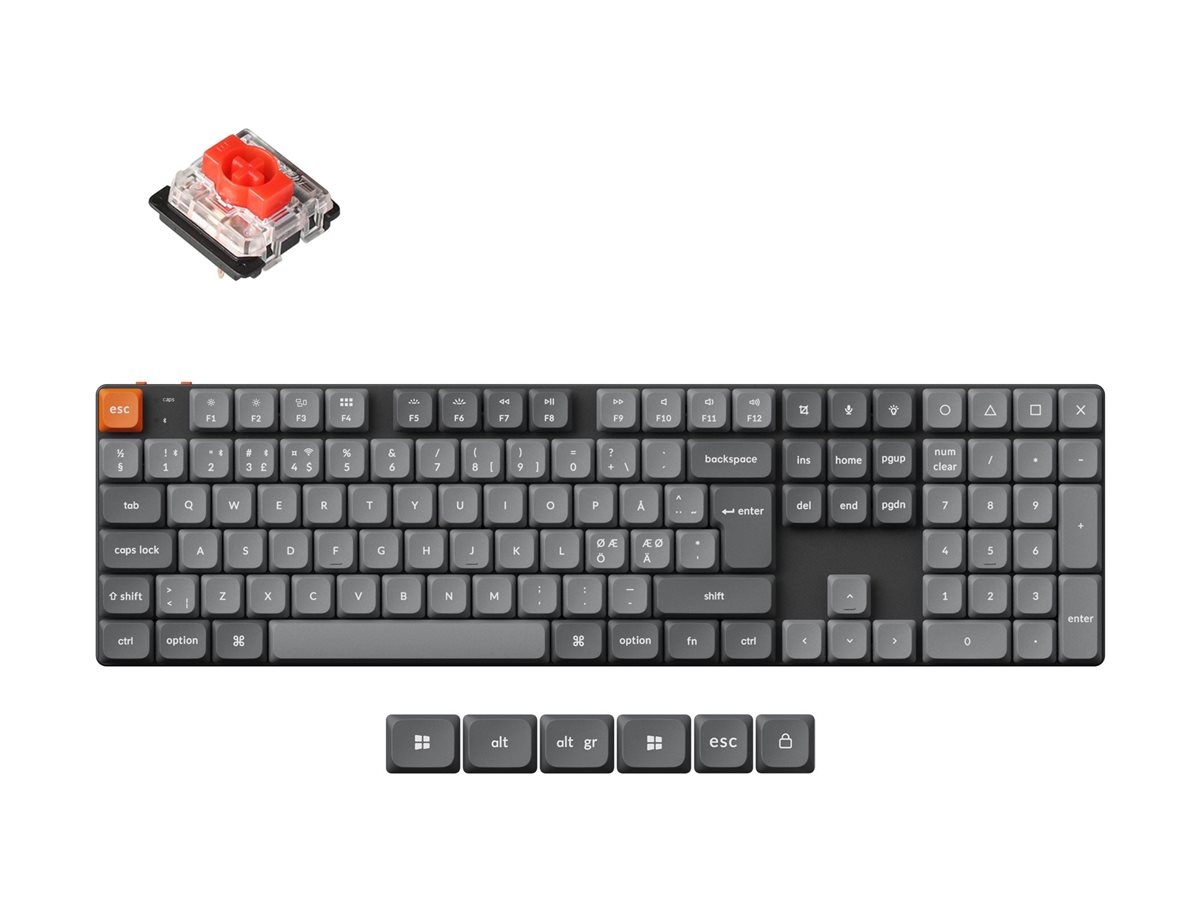| Produktbeskrivelse | Keychron K5 MAX - tastatur - QMK, tilpasset, mekanisk, ISO layout samling - 100% - QWERTY - Nordisk - grå Indgangsudstyr |