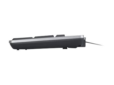 Tastaturet har en håndledsstøtte til at lette arbejdet i hverdagen. Det er ideelt til kontormiljøer, fordi det er holdbart, spildsikret og støjsvagt.