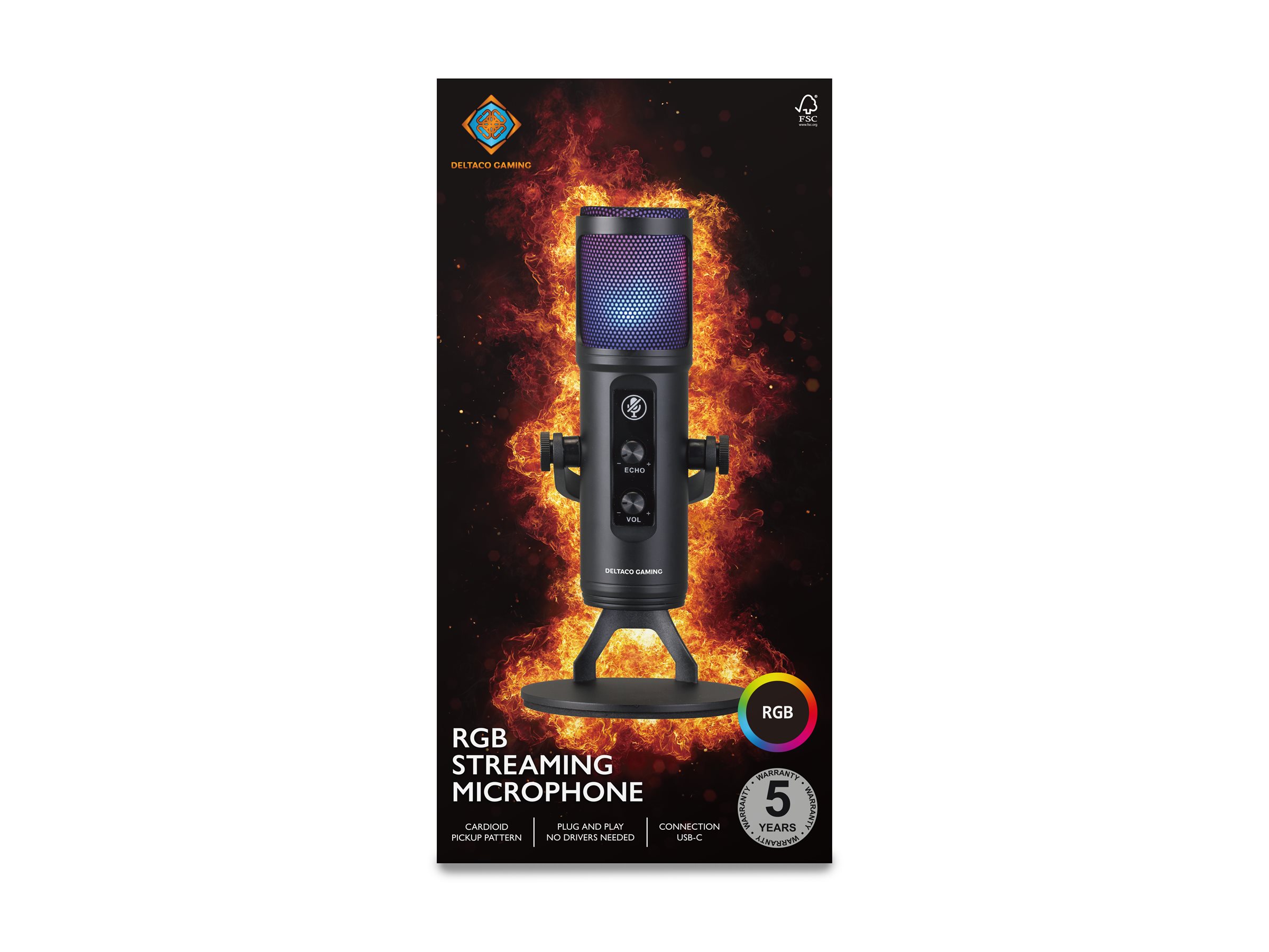 DELTACO GAMING GAM-171 - Mikrofon - USB - sort