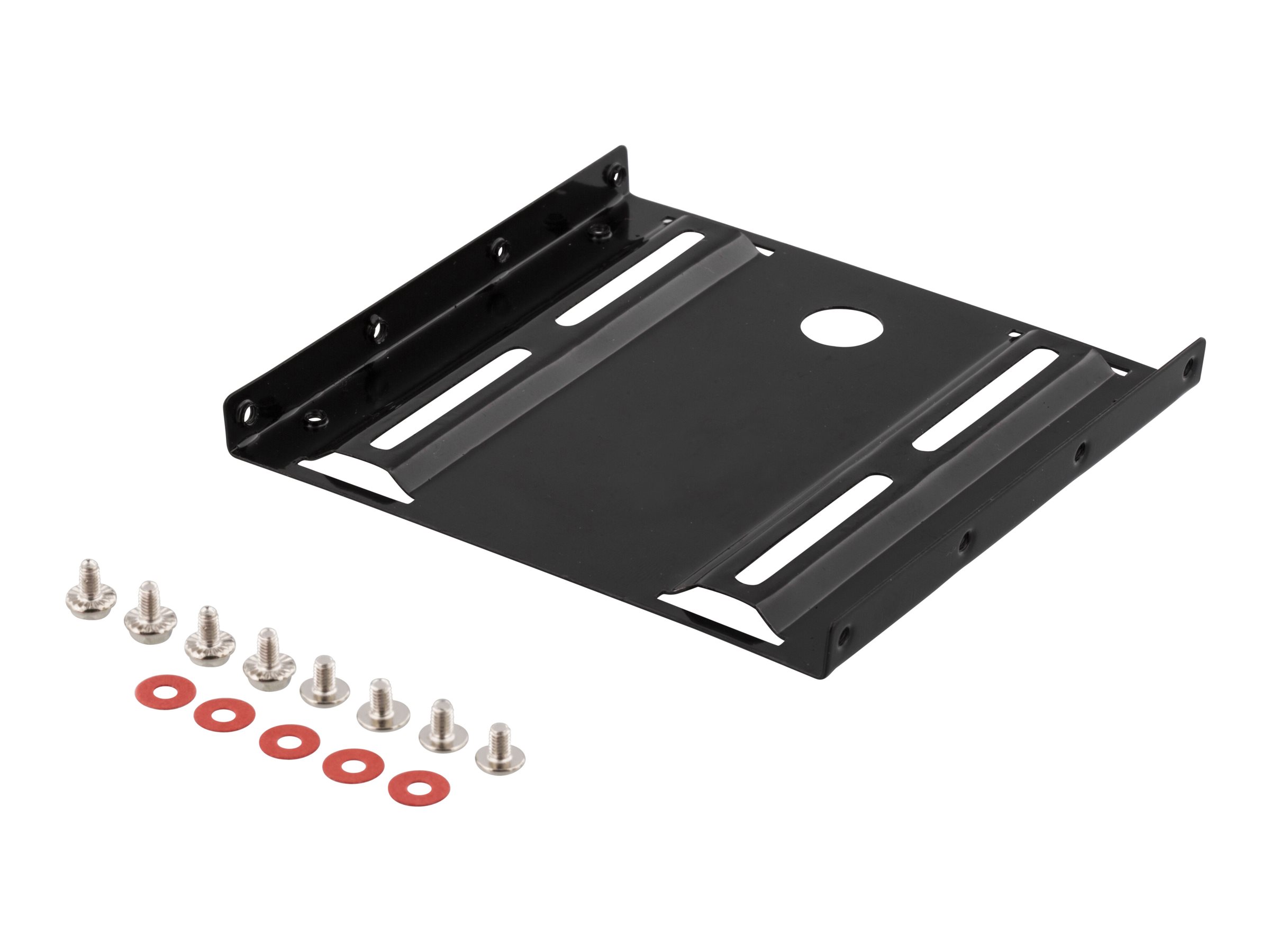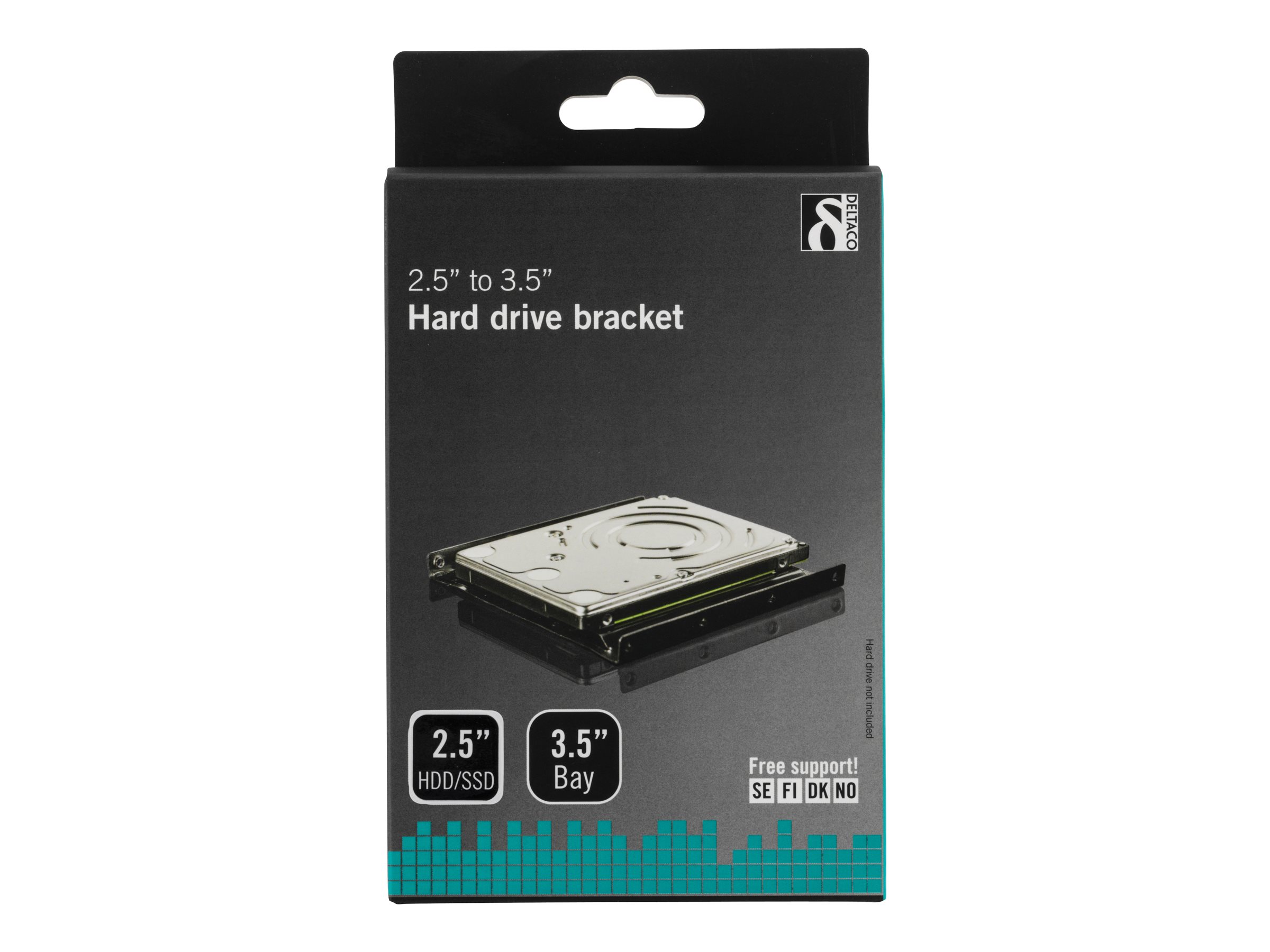 DELTACO monteringsramme for at kunne montere en 2,5" harddisk i en 3,5"-plads, skruer medfølger, sort.