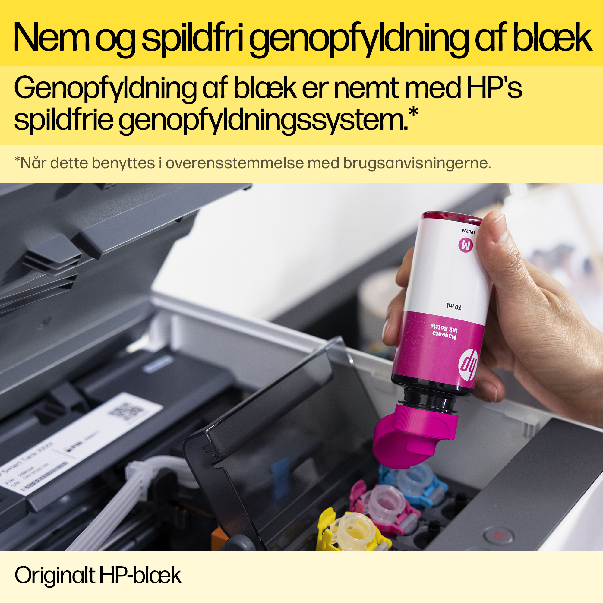 Originalt HP-blæk er det eneste blæk, der er udviklet sammen med HP-printere, så de giver god kvalitet, pålidelige resultater og ensartet ydeevne.