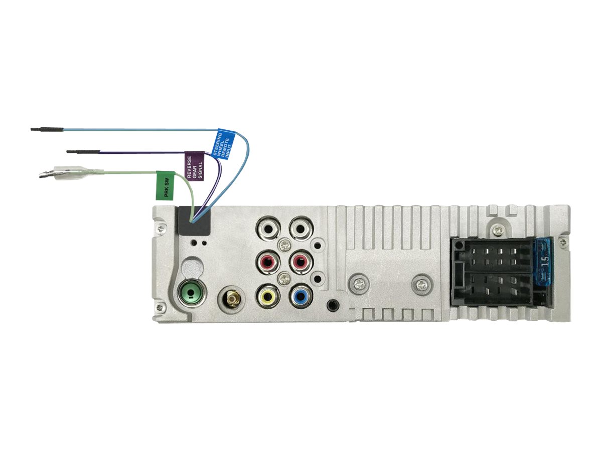 | Anslutningstyp | USB (4 pin USB typ A) - front | Linjeingång för ljud (minihörlurskontakt, stereo 3,5 mm) - front | Kameraanslutning (RCA) - bakre | 2 x linjeutgång för ljud (RCA-telefon x 2) - bakre | Utgång för bashögtalare (RCA) - bakre |