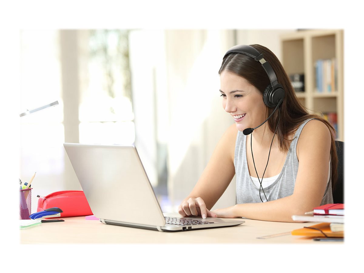 USB-C Hi-Fi-hovedtelefoner med mikrofon er designet med lydklarhed og enhedskompatibilitet i tankerne og er en omkostningseffektiv kombination af hovedtelefoner / mikrofoner af høj kvalitet, der er perfekte til e-læring, arbejde hjemmefra, uddannelses- og kontormiljøer og mere. Kompatibel med alle USB-C-enheder, der kører Windows, macOS, iPadOS, Android og Chrome OS.