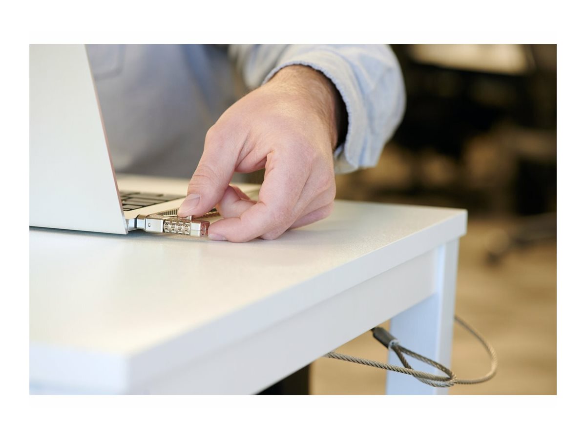 Nu er der en kombinations-kabellås som gør alt. Den universelle 3-i-1-kombinationslås til laptops passer til alle sikkerhedsporte - standard, nano og kileformede - og hjælper dig med at "fremtidssikre" låseløsningen. Nulstilbar 4-tals hjul med 10.000 mulige kombinationer og kraftig stålkabel giver maksimal sikkerhed mod tyveriforsøg. Yderligere funktioner inkluderer Register & Retrieve for hurtig, sikker og enkel hentning af kombinationer; og en fem års garanti støttet af Kensington, opfinder og verdensledende indenfor bærbare sikkerhedslåse. Alle Kensington-låse er verificeret og testet for styrke, fysisk holdbarhed og mekanisk modstandsdygtighed.