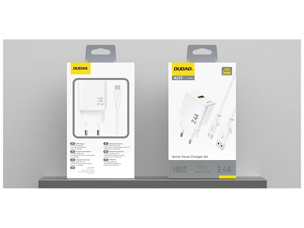 Dudao - Strømforsyningsadapter - GaN - 12 Watt - USB-A - USB-A til USB-C Kabel - Europa - Hvid