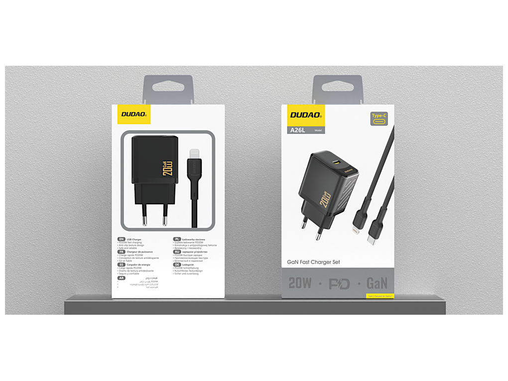 Dudao - Strømforsyningsadapter - GaN - 20 Watt - USB-C - USB-C til Lightning Kabel - Europa - Sort