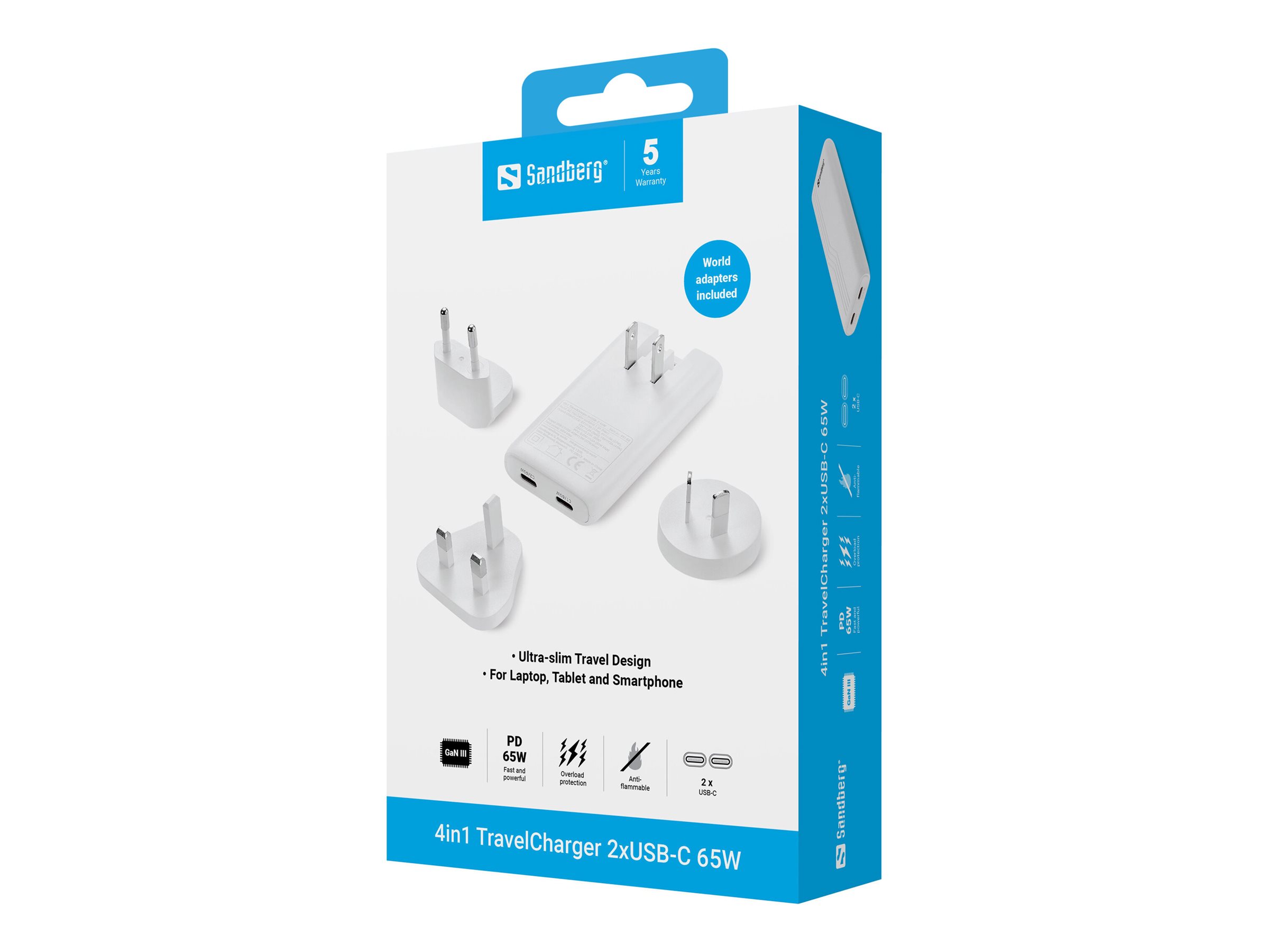 | Produktbeskrivelse | Sandberg strømforsyningsadapter - 4in1 - USB-C - 65 Watt |
