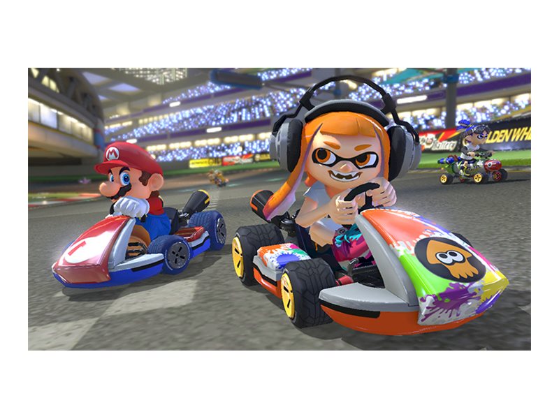 Ræs derudaf i denne ultimative version af Mario Kart 8 og spil hvor som helst, hvornår som helst! Kør mod vennerne eller bekæmp dem i det opdaterede Battle Mode på såvel nye som velkendte baner. Spil lokalt med op til fire spillere med tv-funktionen. Alle banerne fra Wii U-versionen, inklusive DLC, vender stærkt tilbage. Udover stærke gengangere som King Boo, Dry Bones og Bowser Jr.dukker Inklings fra Splatoon også op som spritnye gæstefigurer!
