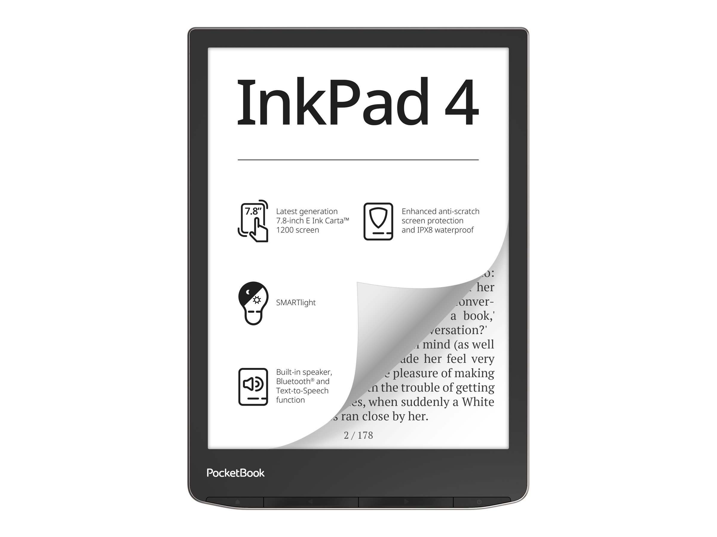 PocketBook InkPad 4 - eBook læser - Linux 3.10.65 - 32 GB - 7.8" monokrom E Ink Carta 1200 (1872 x 1404) - touch screen - Wi-Fi, Bluetooth - stardust sølv