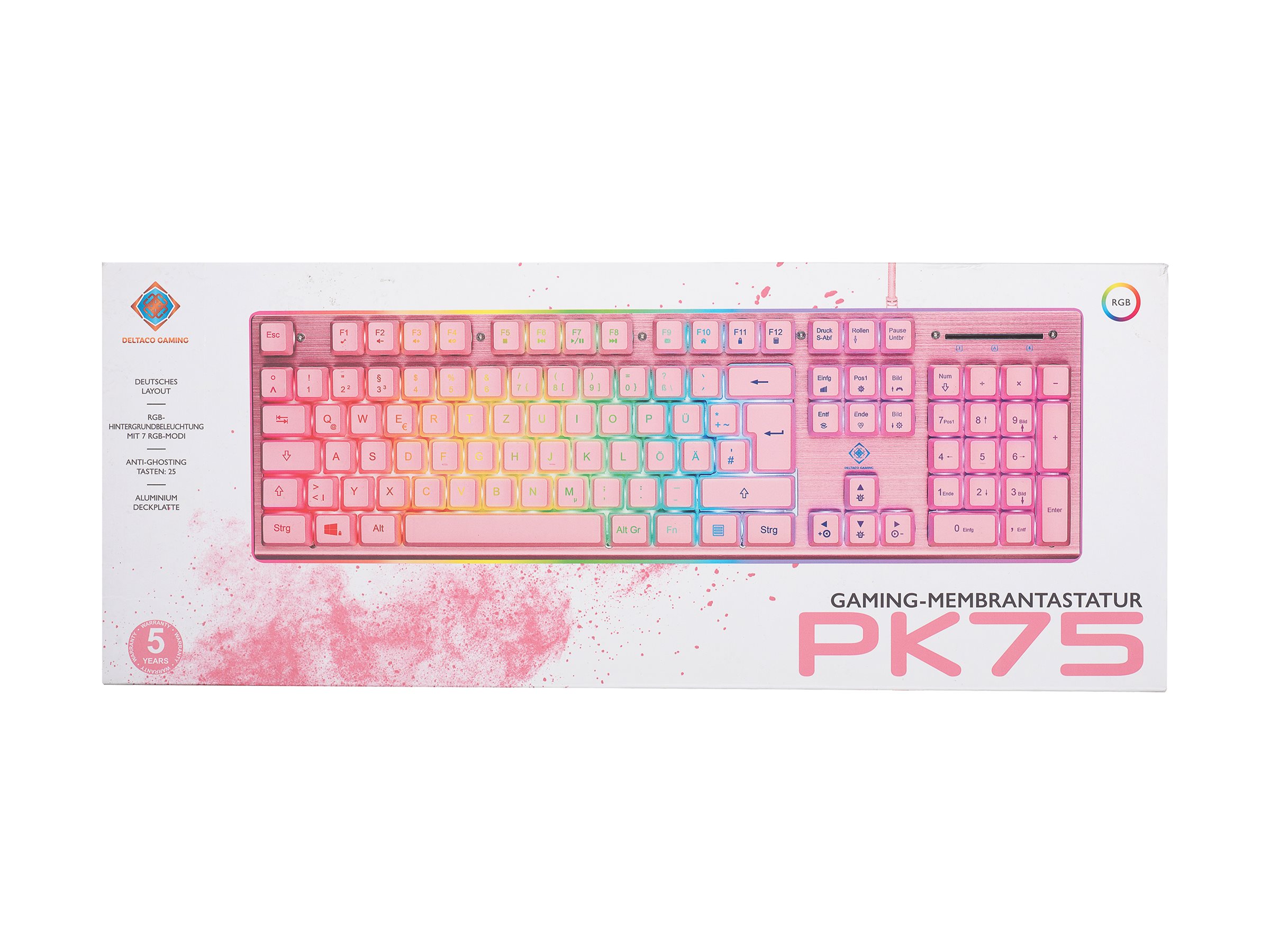 | Produktbeskrivelse | DELTACO GAMING PK75 - tastatur - QWERTZ - tysk - pink Indgangsudstyr |