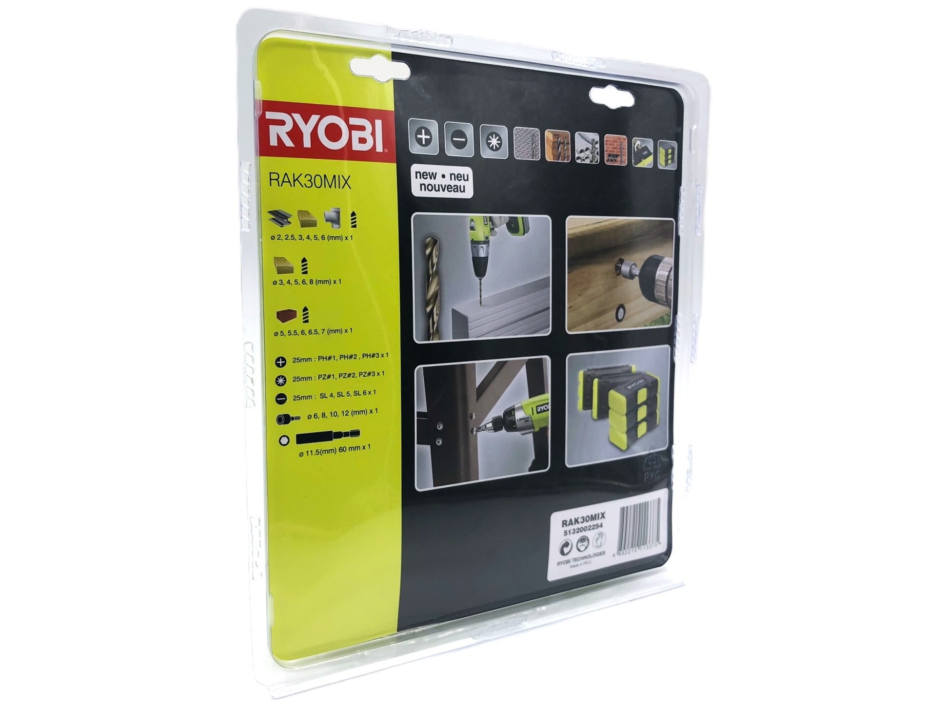 | Produktbeskrivelse | Ryobi RAK30MIX - skruetrækker og borebitsæt - for træ, murerarbejde - 30 stykker |